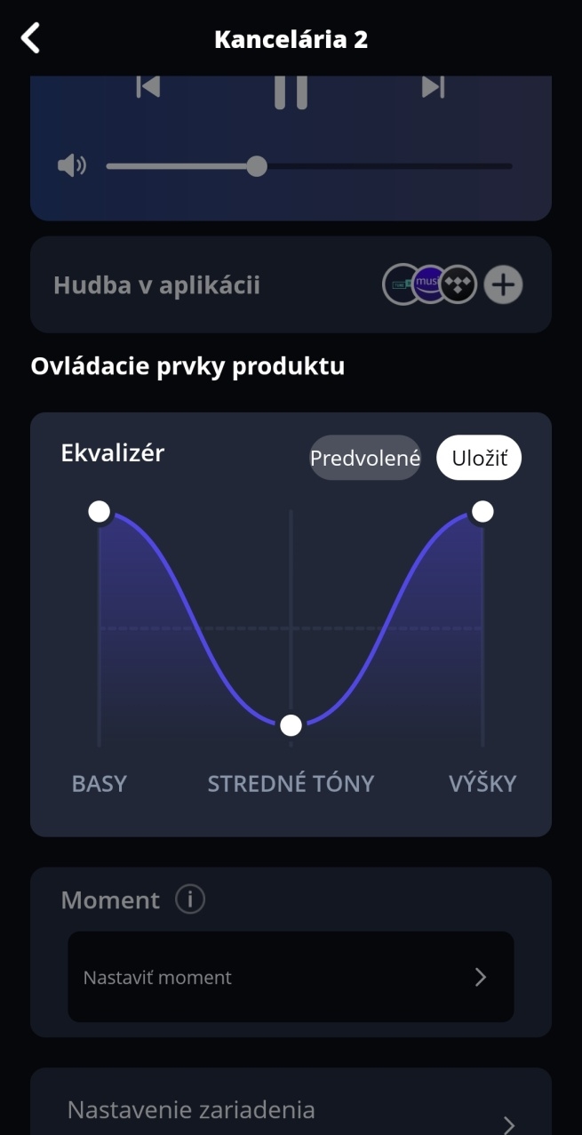 Navyše, práve cez túto aplikáciu môžete využiť aj jedno z ovládacích tlačidiel na hornom paneli zariadenia – Srdiečko. Na jeden dotyk si tak v JBL One vytvoríte zoznam pesničiek, ktoré sa vám páčia a neskôr si ich ľahko vyhľadáte. JBL One rovnako umožňuje aj prispôsobiť si ekvalizér na prehrávanie podľa vašej chuti.