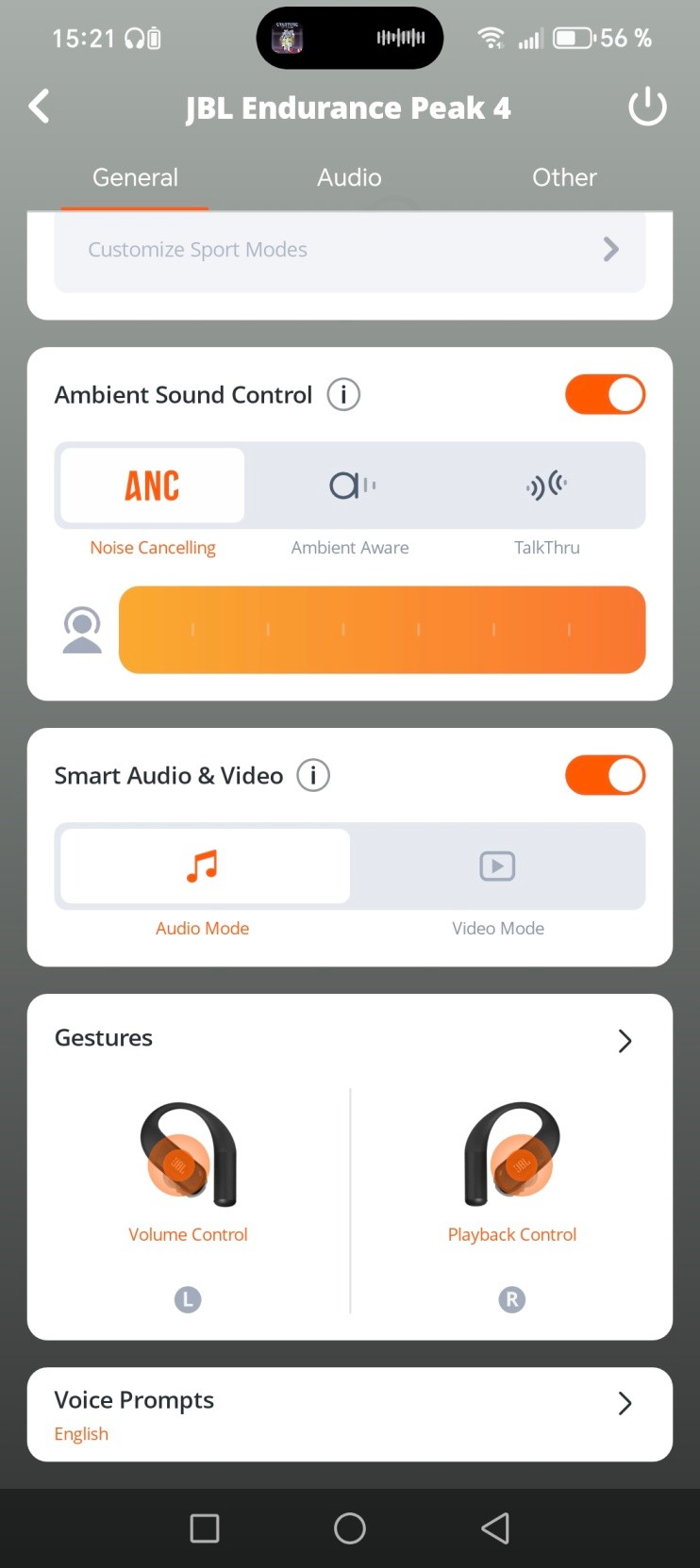 Špecialitou aplikácie však je, že podporuje nastavenie a pridanie športových režimov. Výrobca niektoré režimy už pridal. Ide napríklad o prechádzku, turistiku, behanie alebo napríklad cvičenie na rotopede. Na výber máte medzi 4 ikonami a možnosti prispôsobiť si ekvalizér aj ako ANC alebo Ambient Aware.