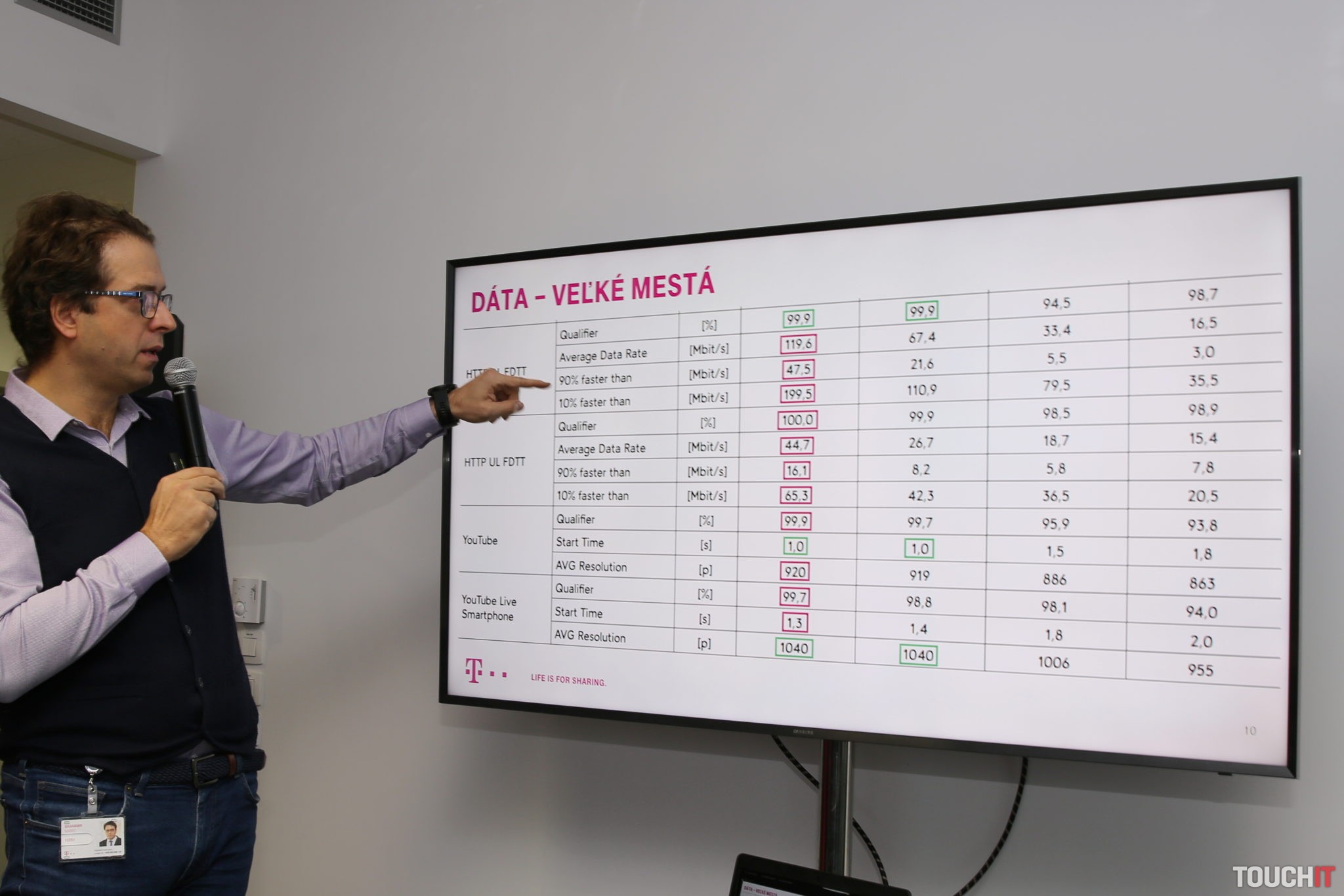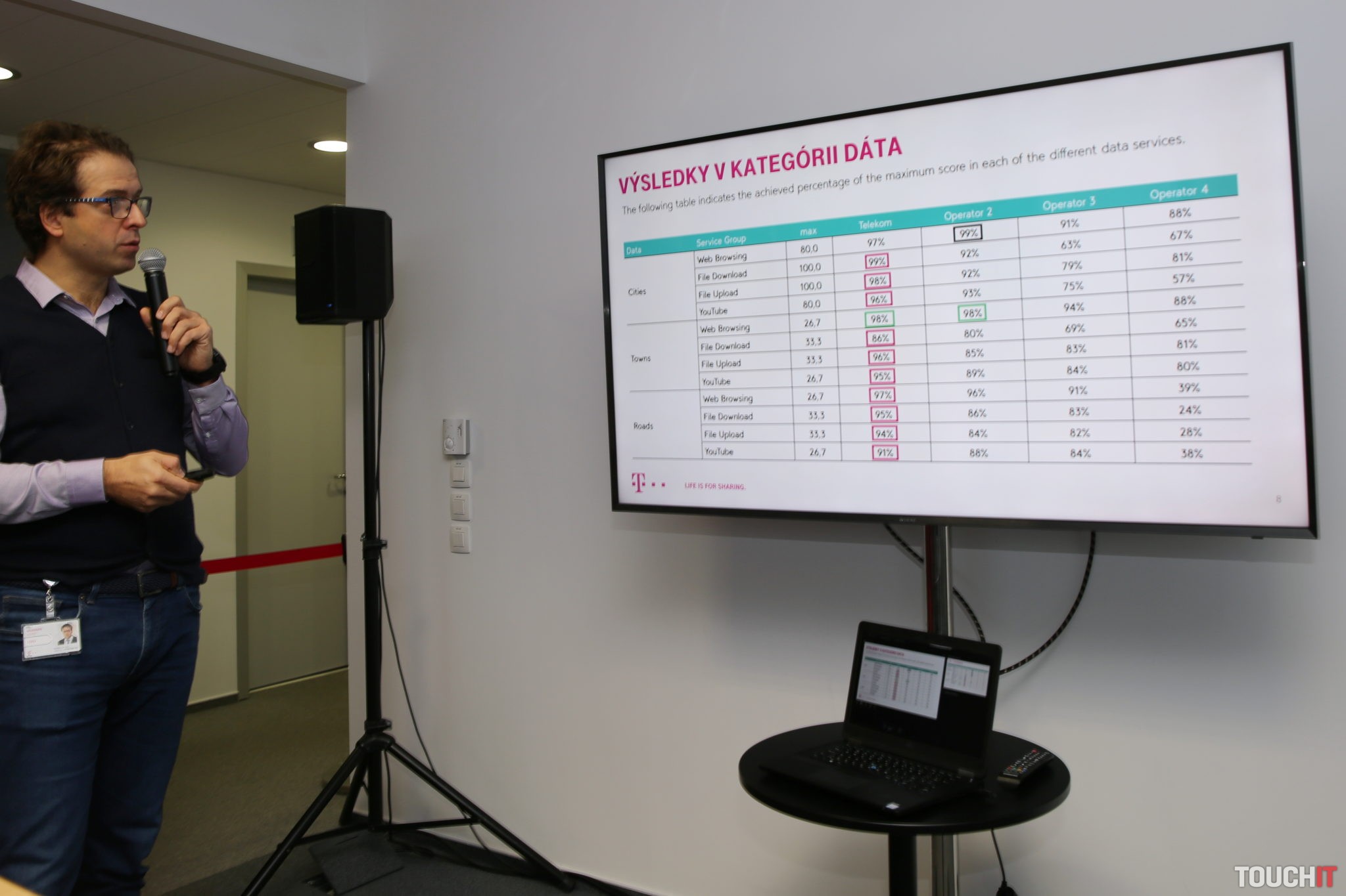 - výborné výsledky v menších mestách: siete Slovak Telekomu majú najrýchlejšie načítanie stránok, 100% prehrávanie YouTube videí, aj najkratší štart videa, dosahujú viac ako 50 Mbps pre sťahovanie dát a takmer 30 Mbps pri ich odosielaní