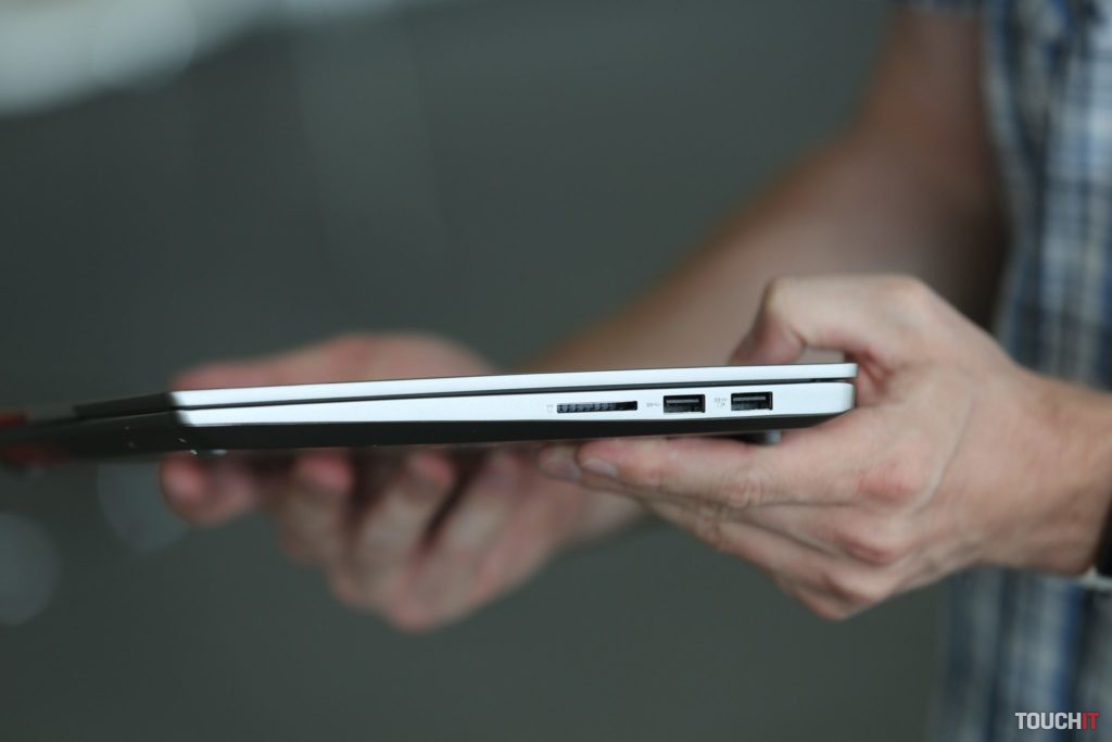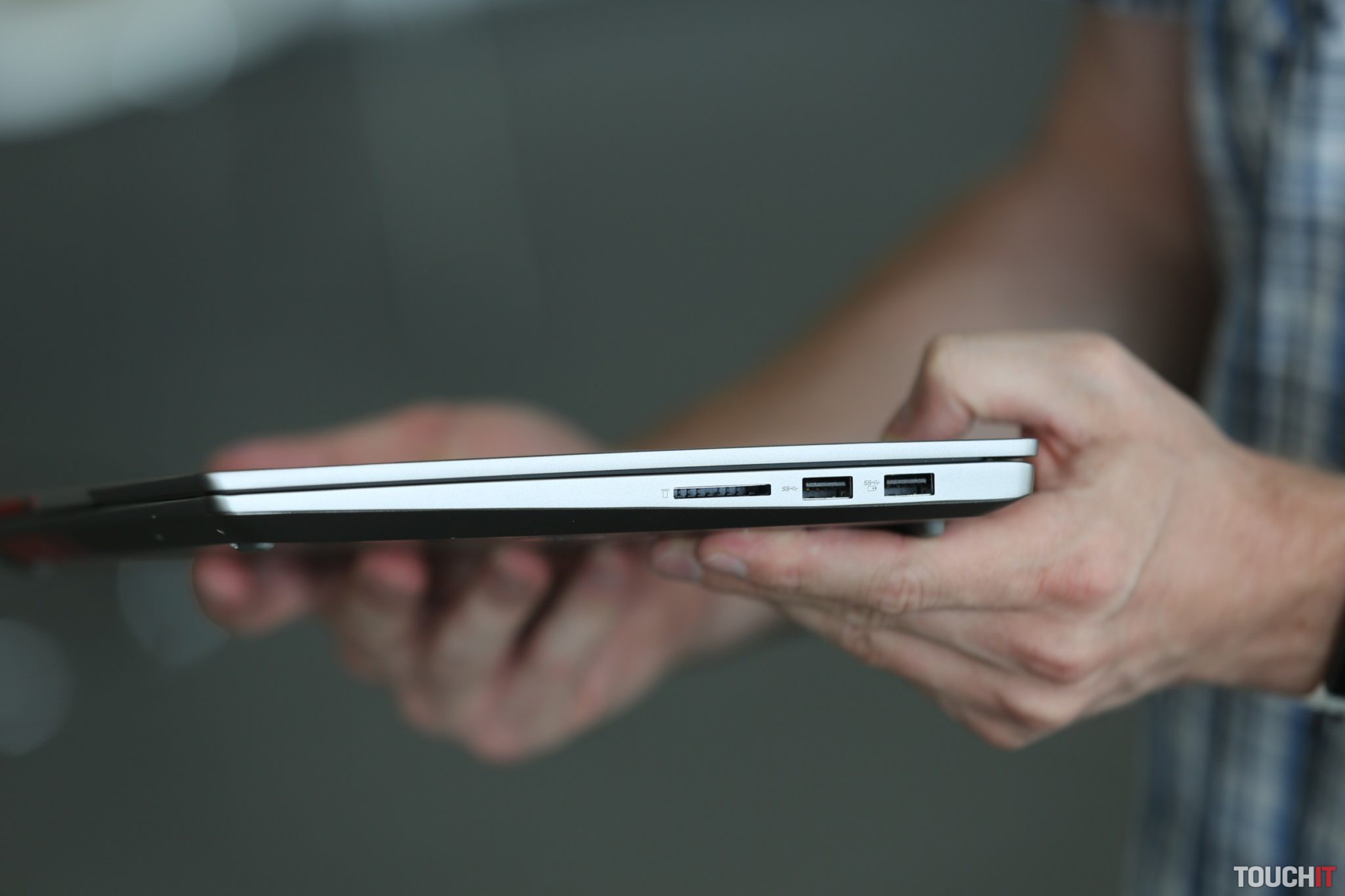 Vidno to na veku ale aj spodnej časti. Či už teda budete notebook používať alebo ho prenášať v ruke, pripravte sa na to, že si vás všimnú. Súčasťou balenia je kožený obal na prenášanie notebooku. Spodná časť má špeciálnu mriežku s dierovaním. Vyzerá to veľmi dobre a aj to dobre funguje. Notebook je totiž v bežnom režime úplne tichý.