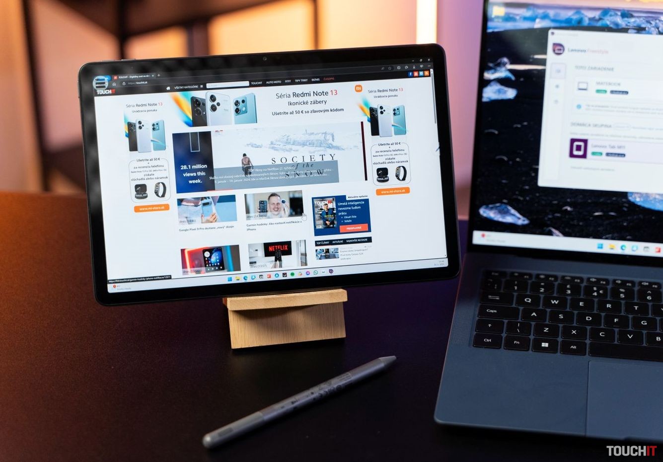 Priložené dotykové pero je kvalitné a predstavuje pridanú hodnotu v porovnaní s priamou konkurenciou.