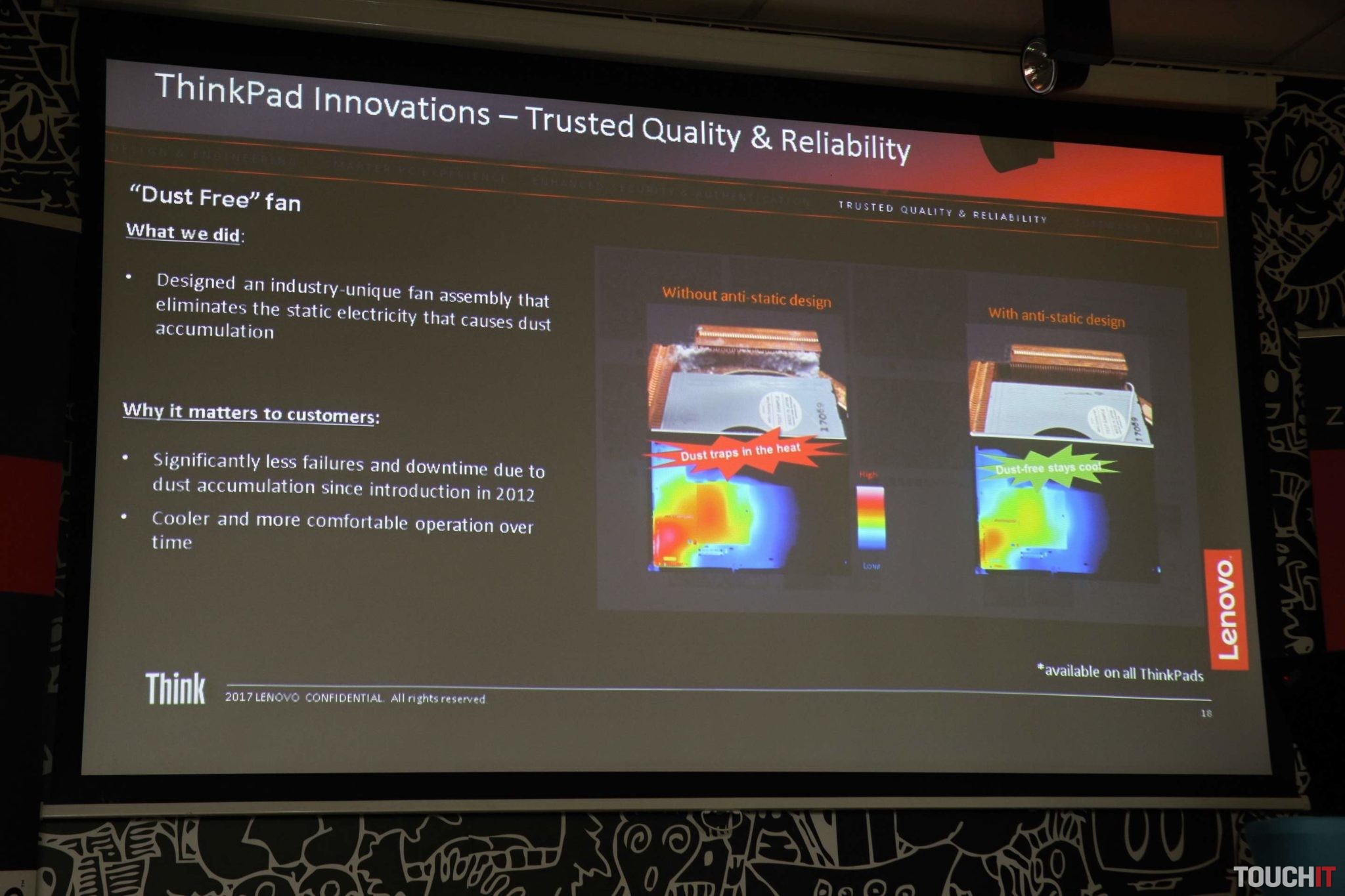 Po novom sú dizajnovo upravené aj lopatky ventilátora. Sú navrhnuté na predlohe sovieho krídla. To je komponent na efektívne chladenie. Prachu sa však zamedziť nedá a tak výrobca pridal antistatický káblik, ktorý vypustí elektrický výboj a tým uvoľní usadený prach. Ventilátor ho potom vyfúkne von.