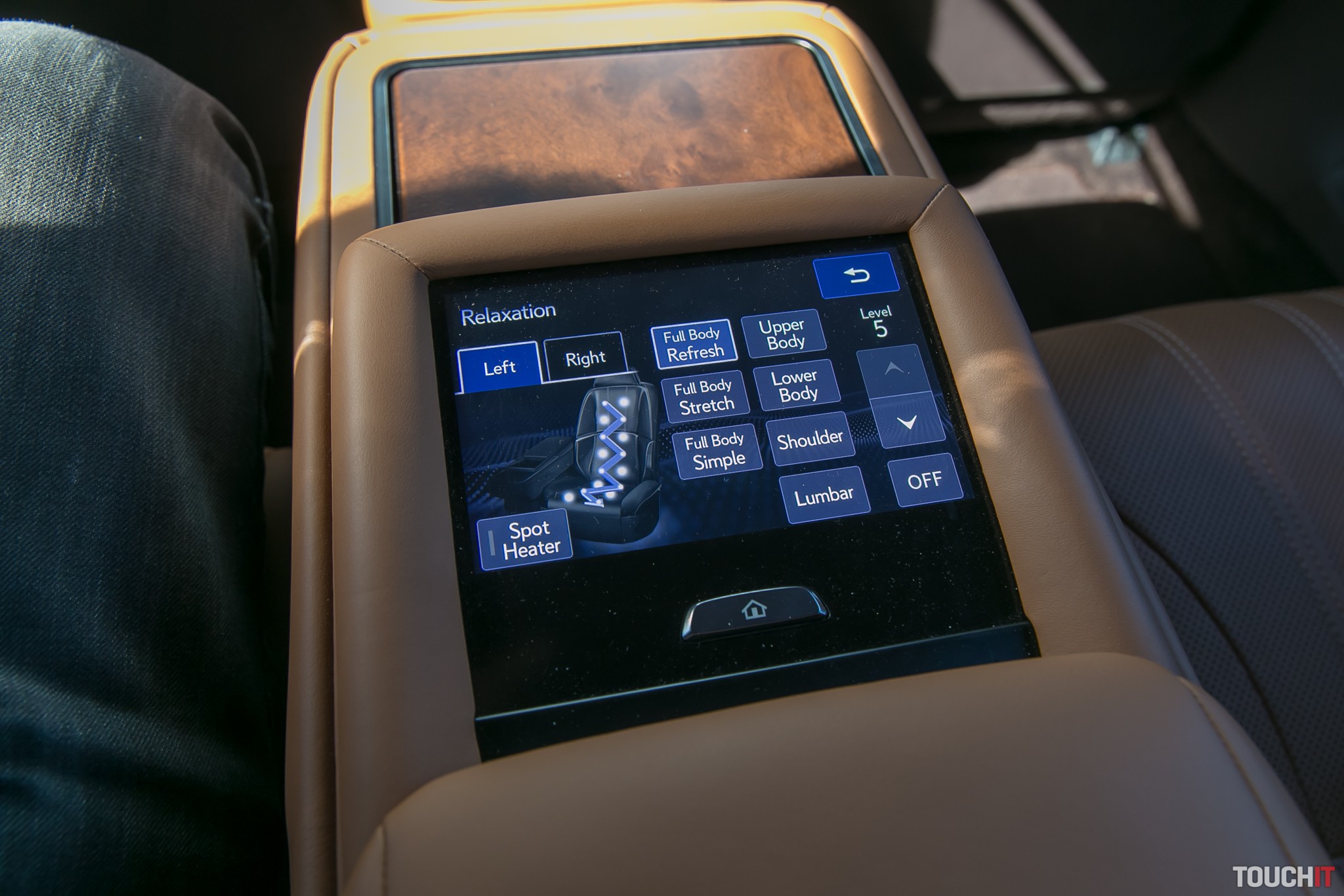 Vo vnútri nájdete jemnú kožu na sedadlách a prémiové materiály všade, kde sa len pozriete. Všetko je prešívané, vytvorené s tým, aby ste sa chceli povrchov dotýkať. Osobitné postavenie má osoba sediaca pravo vzadu – to je skutočný VIP, na ktorého sa toto auto sústreďuje. Ako VIP máte svoj displej s dotykovým ovládaním a ako prvé môžete nechať odsunúť predné sedadlo tak, aby ste mali dostatočne veľa miesta na vystretie nôh vrátane podložky pre nohy. Pred vami je displej, vybrať si môžete vlastné rozhlasové stanice, použiť DVD prehrávač alebo pripojiť vlastné video cez HDMI. V testovanej verzii nebol k dispozícii televízny tuner. Výborné je aj strešné okno a vzadu môžete aj elektronicky ovládať clony na oknách. V celkom zatvorenom stave nie je zvonku vidieť do priestoru, kde sedí VIP osoba. V tejto časti majú pasažieri aj možnosť pripojiť spotrebič s 230 V napájaním. Samozrejmosťou je vyhrievanie/ofukovanie sedačiek a tiež niekoľko typov špeciálnych japonských masáží.