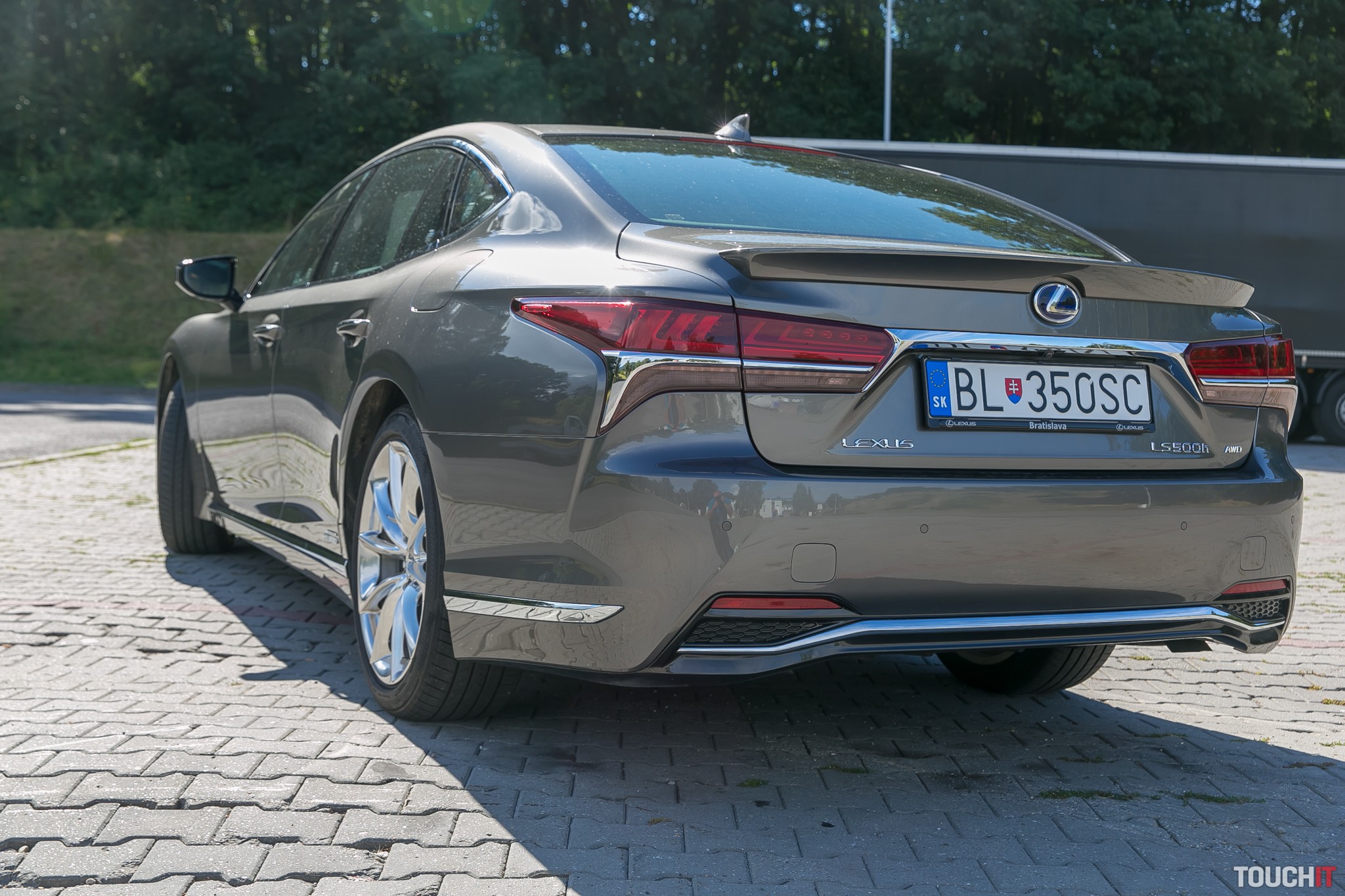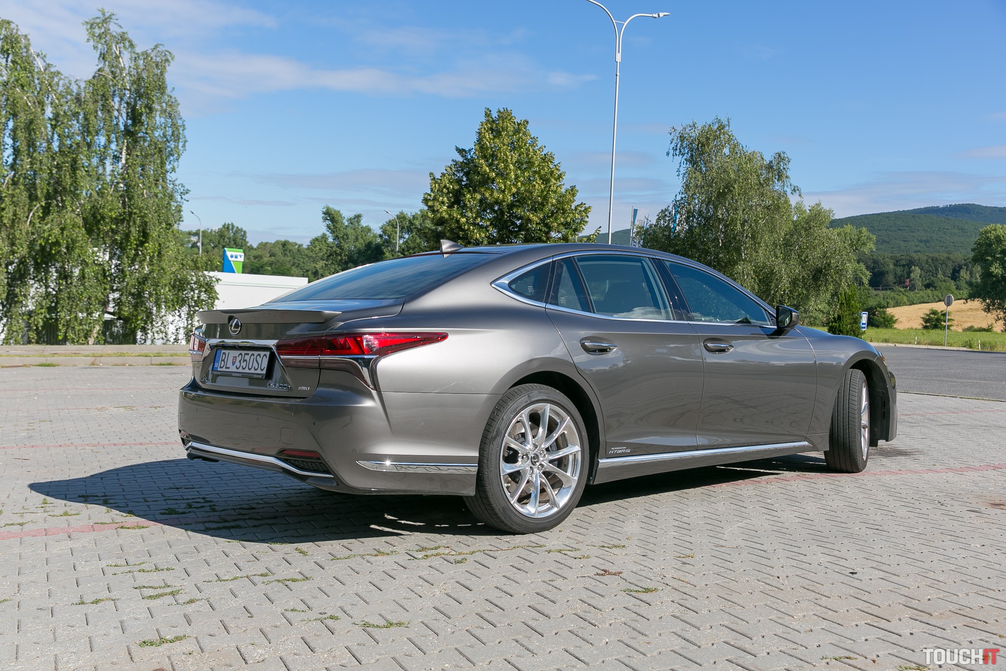 Lexus LS 500h je auto, za ktorým sa otočia všetci. Počas nášho testu pútal viac pozornosti ako napr. Maserati Levante. Na prvý pohľad je to auto, na ktorom chcete nechať oči. Upúta obrovská predná vretenovitá maska a tú nájdete u všetkých modelov značky Lexus. Je to hybridné auto, kombinuje benzínový motor s elektrickým. Písmeno L potom nájdete v rozličných častiach tohto automobilu – v zadných svetlách, vnútornom displeji a pod. Z auta je veľmi dobrý výhľad von. Celkovo dizajn zvonka nemá chybu, je to robené na prvý dojem, ale aj čo najnižší aerodynamický odpor.