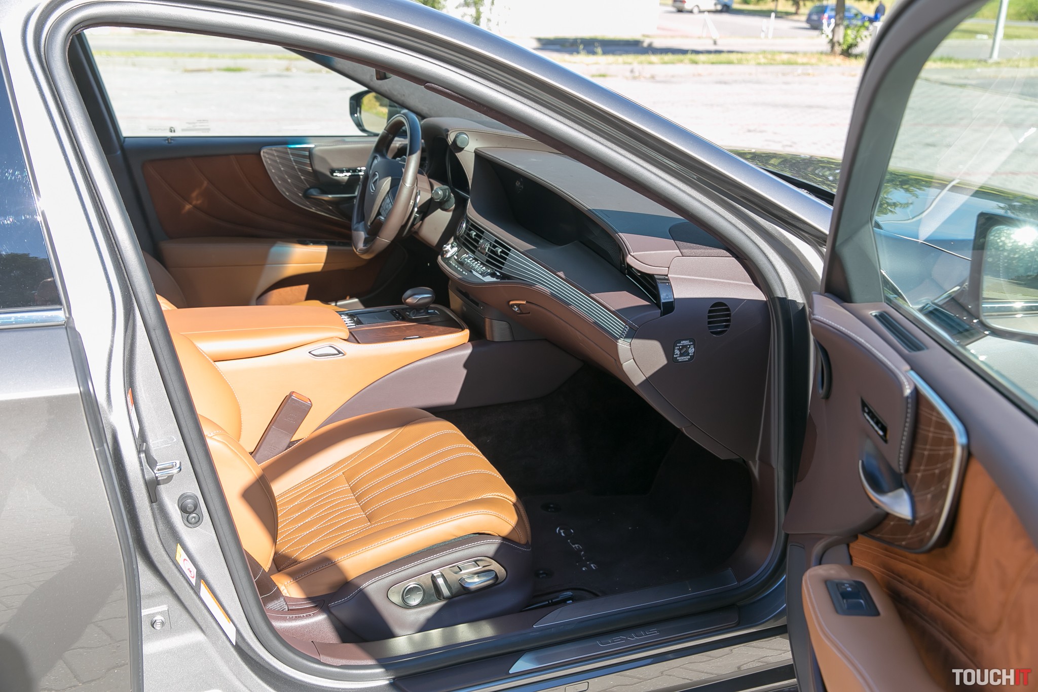 Vodič a spolujazdec tiež nie sú nejakí žobráci v tomto aute. Obaja majú mäkkú a pružnú kožu na sedačkách, môžu si zvoliť vyhrievanie a ofukovanie tela ako aj masáže. A treba povedať, že toto sú masáže, ktoré naozaj cítite. Nie akési neúčinné hladkanie len aby bolo. V strope nad každým cestujúcim je osvetlené zrkadlo a tiež reproduktor z audio systému Mark Levinson. Navyše k tomu pripočítajte kamerový systém s 360° pohľadom okolo auta.