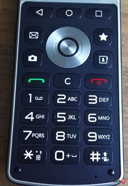 Tlačidlo s hviezdičkou na vytvorenie skratky stačí dlhšie podržať a zase si môžete vyberať vašu aplikáciu na priradenie k tejto funkcionalite. Netreba ísť nikam do menu. Vlastne celkovo je ovládanie telefónu naozaj dobre vyriešené až na menšie komplikácie pri potrebe potvrdiť textové zadanie v programoch. Čiže, špeciálne prispôsobené rozhranie chválime a menu pozostávajúce z matice ikon 3 × 3 sa nám páčilo. Pri používaní nám chýbal „Enter“. Po napísaní vyhľadávaného textu bolo treba použiť virtuálne tlačidlo v aplikácii. Potvrdenie kurzorovým krížom nefungovalo. Telefón je v zatvorenom stave kompaktný, no po otvorení nedočiahnete na displej, iba ak na jeho spodnú časť. Otvorení tela sa podstatne zväčší jeho dĺžkový rozmer.Fotoaparát