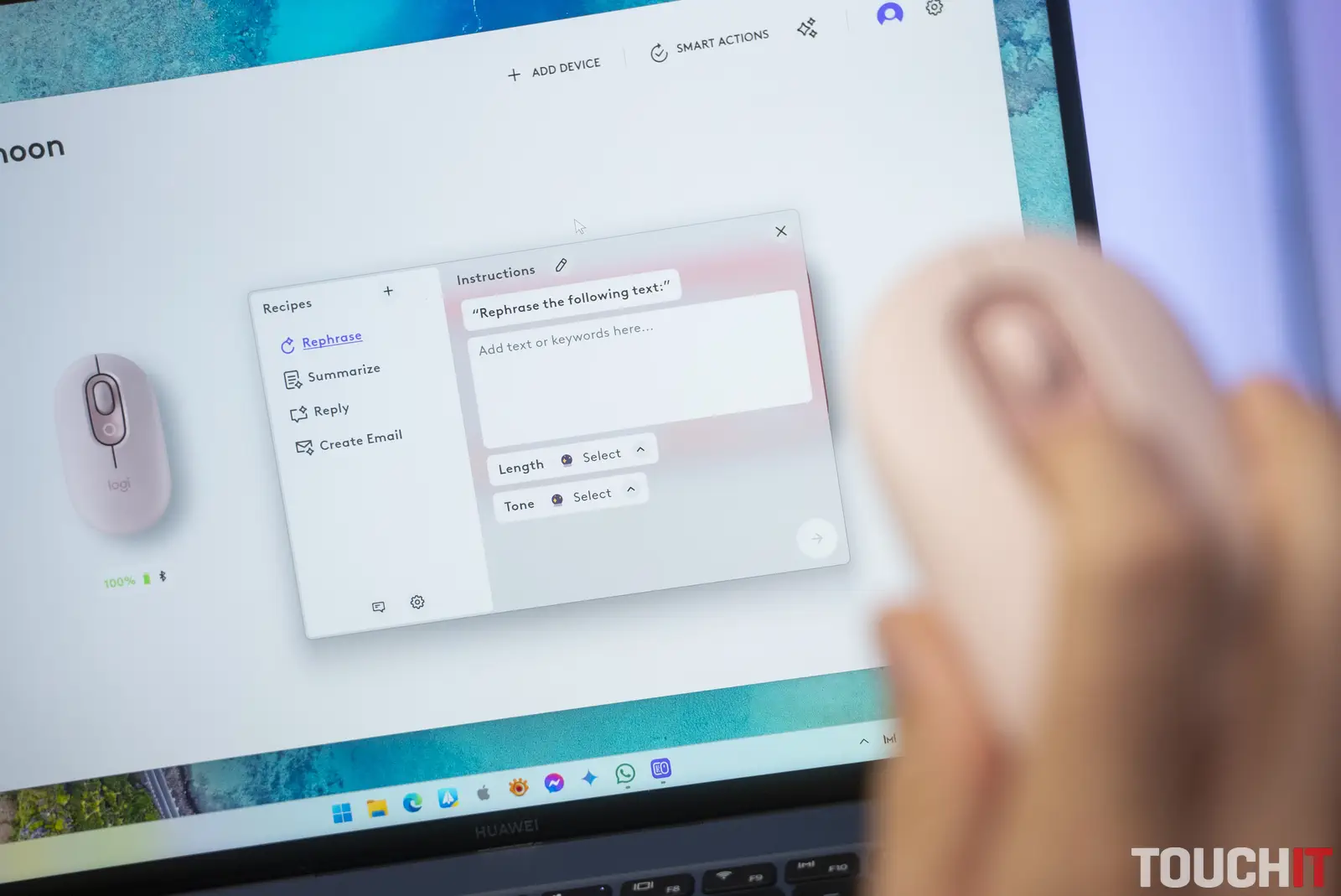 Ja som ho používal na otvorenie funkcie AI Prompt Builder. Ide o zabudovaný nástroj v aplikácii Logi Options+, ktorý umožňuje vykonať rýchle úkony prostredníctvom ChatGPT, ako je prepísanie textu, sumarizácia, vytvorenie odpovede alebo emailu.