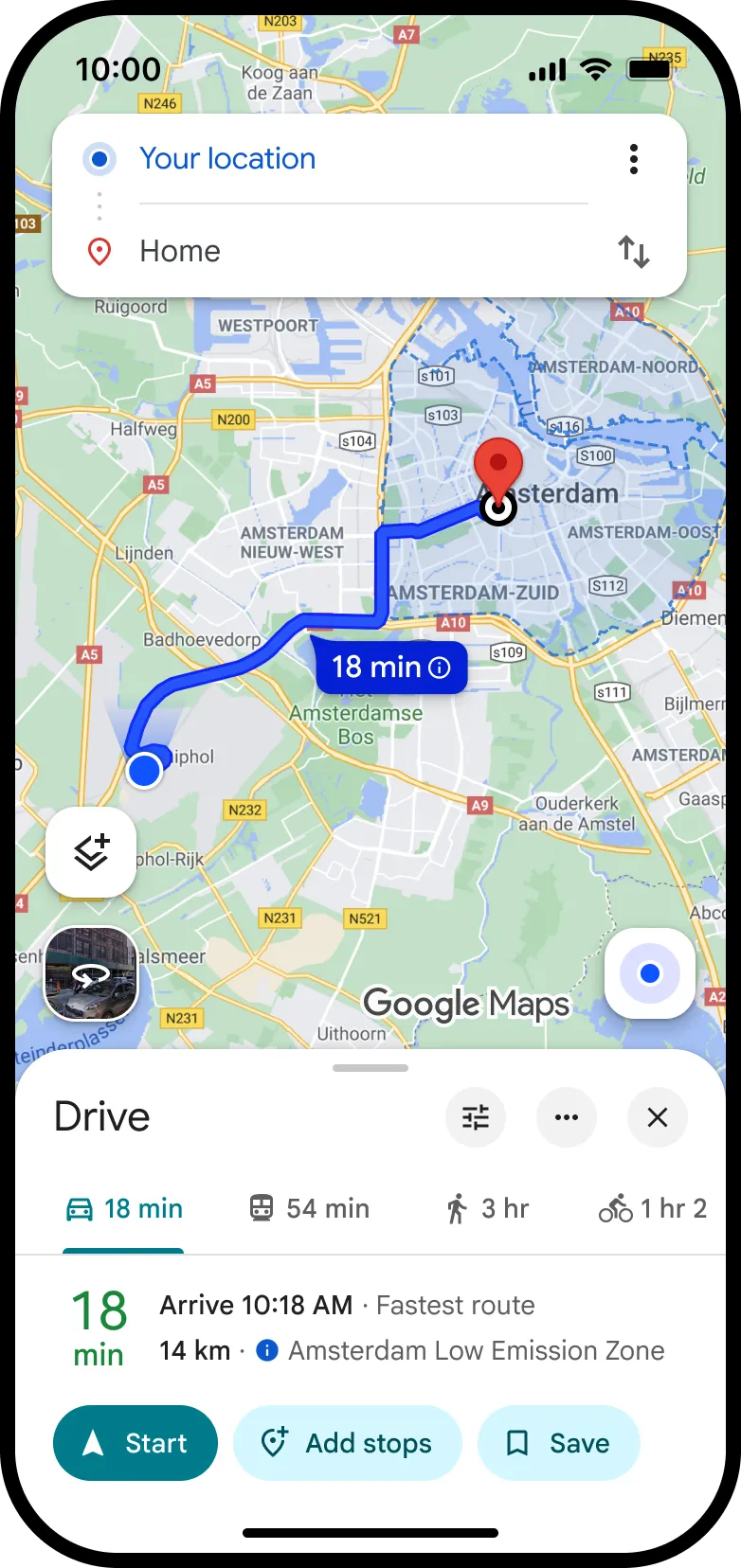 Ak sa predsa len počas leta nezaobídete bez auta, Mapy Google vám ponúknu trasy s dôrazom na úsporu paliva alebo energie a pomáhajú nájsť najúspornejšiu trasu. Mapy iba v roku 2024 zabránili vzniku viac ako 2,7 milióna ton skleníkových plynov, ktoré by inak vyprodukovalo viac ako 630 000 áut.