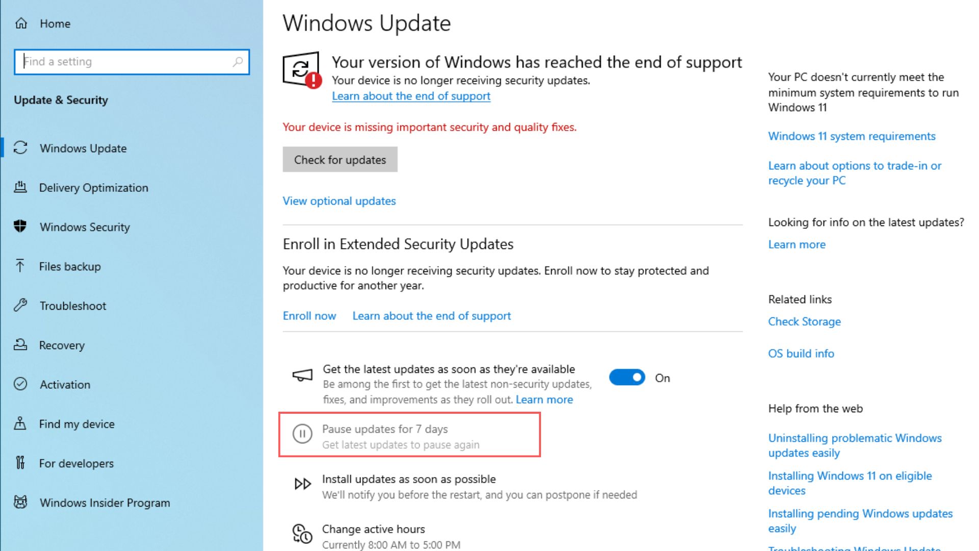Kuriozitou na tejto chybe je, že nie je možné pozastaviť aktualizovanie na najnovšiu verziu 11, ak používateľ nie je prihlásený do rozšíreného programu podpory pre Windows 10.