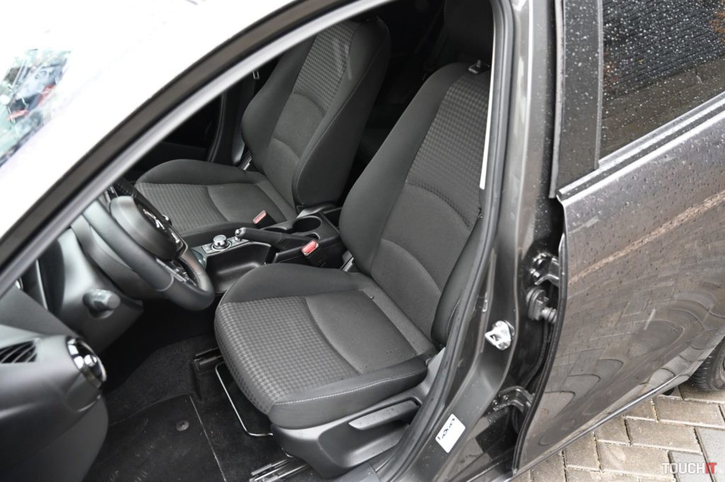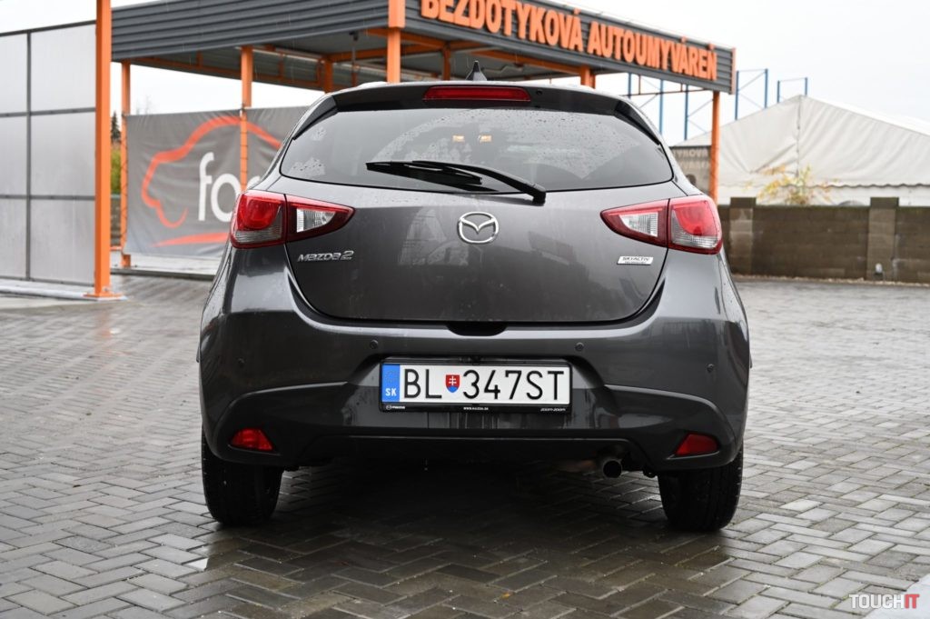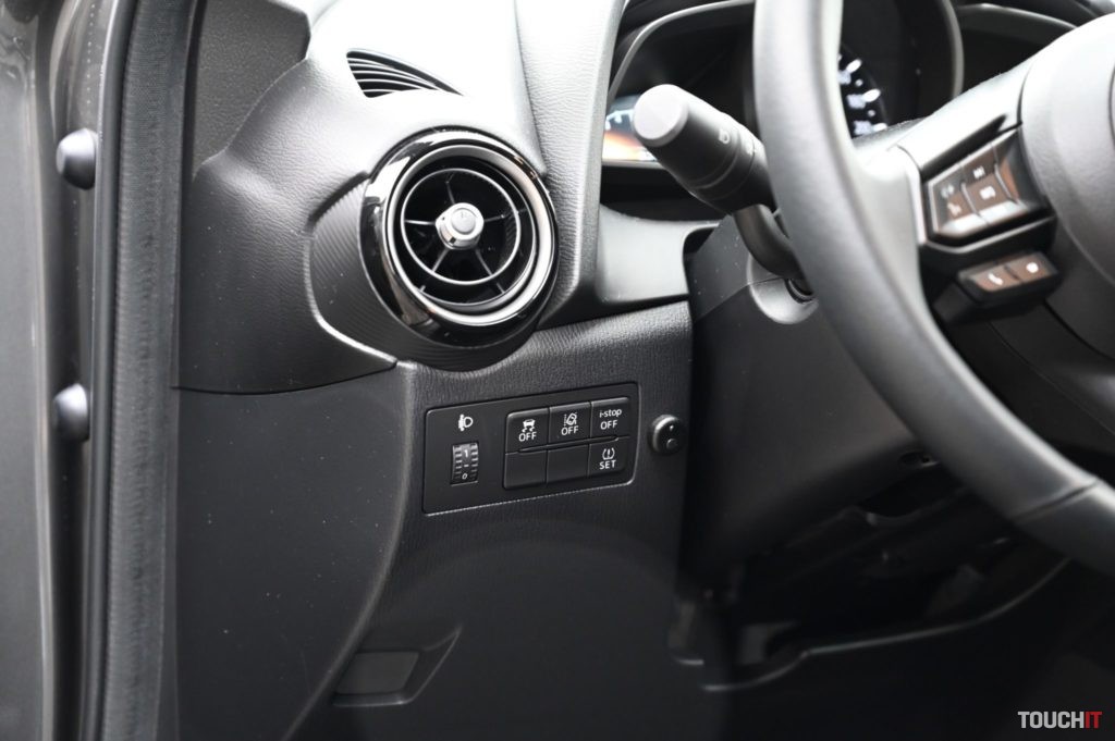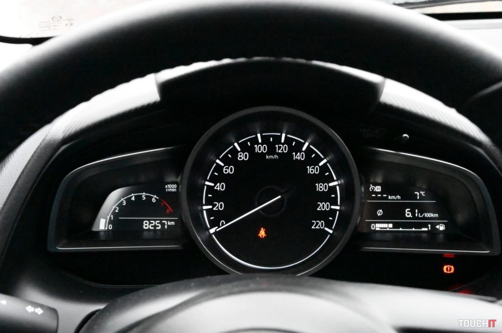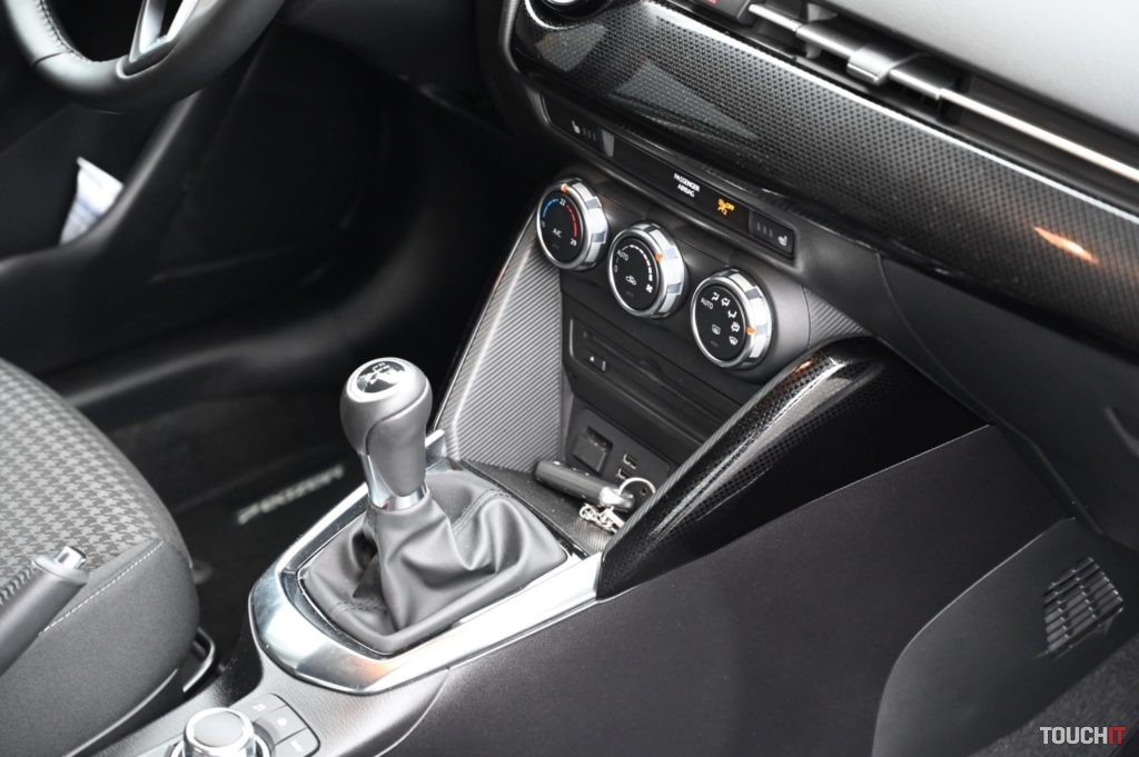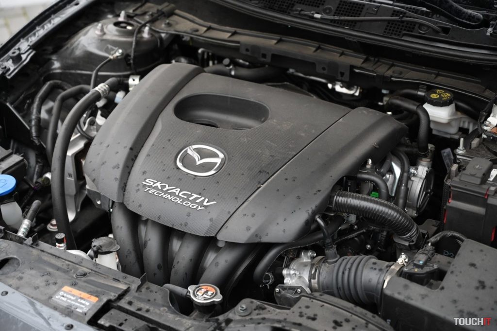 V každom detaile a prelise vidieť dizajnový jazyk automobilky, ktorý je v prípade väčších modelov trošku výraznejší. Tu je implementovaný decentne. Dizajn dvojky je podarený a osobne sa mi celkom pozdáva predok, resp. výrazná chrómová lišta pod maskou chladiča, ktorá opticky prechádza až do svetlometov. Tie sú klasické halogénové, ale svietivosť bola prekvapujúco dostačujúca. LED technológiu využívajú iba hmlové svetlomety. Po dizajnovej stránke vyzerá lepšie model Revolution TOP, ktorý má vo výbave LED svetlomety, vrátane denného LED svietenia. V tomto prípade sú klasické „žiarovkové“ svetlomety aj vzadu. Skrátka, dvojka vyzerá dobre, je pekne spracovaná a z pohľadu celkového vyhotovenia je neutrálna – ani ženská ani mužská. No a celok dotvárajú pekné 16“ hliníkové disky (185/60/R16). S ľahkosťou sa presuňme dnu, kde je prekvapivo dostatok miesta a pohodlie aj pre 2 metrového šoféra. Vpredu je to z pohľadu priestoru úplne v poriadku. Látkové sedadlá sú pohodlné, dobre sa tu „pracuje“ a polohu som si našiel tiež celkom rýchlo. Ovládacie prvky sú jemne orientované na vodiča a všetko je na dosah ruky. Bodaj by aj nie, až také veľké to vo vnútri nie je J. Osobne mi trošku chýbala lakťová opierka, ktorá by sa sem určite zmestila. Ešte dodám, že po prejdení viac ako 200 km som vysadol celkom v pohode, bez bolestí :). Celkové vyhotovenie interiéru je z pohľadu materiálov a spracovania na veľmi dobrej úrovni, čo si zaslúži pochvalu. Ani zadní pasažieri sa nebudú sťažovať, ale záleží od ich proporcií. Ideálne, ak to budú deti alebo útlejšie postavy. Pre 4 a už vôbec nie 5 chlapov to nie je, pochopiteľne. Priestor vzadu je primeraný proporciám auta, povedal by som, že až nadpriemerný. Samozrejmosťou sú aj ISO-Fix kotviace body. Posun o ďalšiu pozíciu znamená kufor, ktorý má v základe 250 litrov. Po sklopení zadných operadiel (delenie 60:40) to bude 882 litrov. Celkom fajn, ale iba na menšie nákupy a predmety. Ale áno, ja som sem vopchal aj väčší kočík, táto disciplína musí byť, takže mamičky sú „safe“. Treba nájsť správnu cestu, ale ide to. Motor, prevodovka a podvozok Malú Mazdu poháňa benzínový 4-valec (atmosférický) s výkonom 66 kW (90 ps) a max. krútiacim momentom 148 Nm. Motor je spriahnutý s 5-stupňovou manuálnov prevodovkou. Táto kombinácia je veľmi fajn, a to aj napriek tomu, že tie čísla nie sú veľké. Základom je, že ide o 4-valec, ktorý niečo vydrží a má príjemnejší zvuk ako 3-valce. Výkonu je dostatok tiež, o to sa báť netreba. S dvojkou sa dá aj zabaviť, veľmi pekne ide „po plyne“ a zákrut sa tiež nebojí. Nie je to pretekár, ale v rámci bezpečnosti je dobré vedieť, že ide o stabilné auto, ktoré sa pri prudšom manévri neroztrasie.