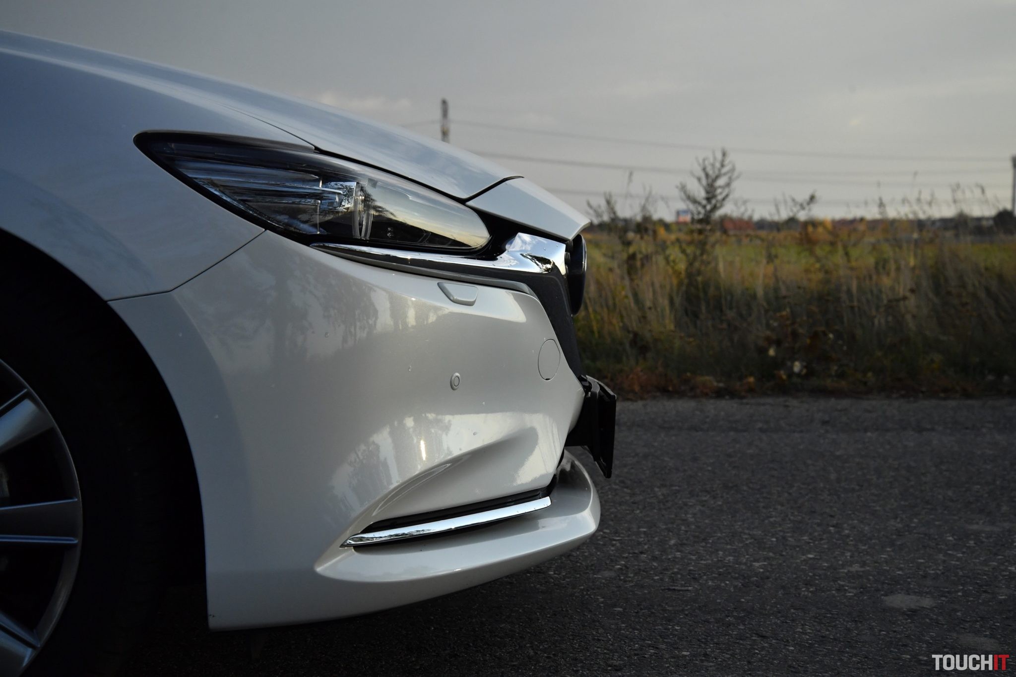 Dizajn Mazdy 6 sa mi páči dlhodobo, to musím priznať. Faceliftovú verziu som doposiaľ videl (asi) iba na obrázkoch. V reálnej prevádzke ich ešte nie je veľa, aspoň ja som na nich nemal šťastie. No a práve tu nastal rýchly zvrat všetkých pocitov – čakala na mňa nádherná 6ska v bielej perleti, obutá na elegantných 19“ diskoch a po nastúpení dovnútra ma ovalil špičkovo spracovaný interiér. WAW efekt ako sa patrí! A čo prezradím už teraz, tento pocit ma sprevádzal až do posledného dňa testu. Každý Boží deň som ju obdivoval a tešil sa z nej ako malý chlapec, ktorý dostal nový „angličák“. Treba hovoriť viac? Jednoducho paráda! Červenej bolo dosť, k Mazde síce patrí, ale obzerajte sa po tejto bielej, je ako z rozprávky. Pozrime sa na ten dizajn ešte jedným okom. Nejde o žiadnu revolúciu, ale poriadnu evolúciu, ktorá sa podarila. Kompletne prerobená je predná maska, ktorá je výrazne väčšia a má zaujímavý segmentový vzor. Zmenený je aj dizajn oboch nárazníkov – v podstate nezostal kameň na kameni a to je dobre. Ak vedľa seba postavíte novú a predošlú 6ku, tak pochopíte o čom hovorím. Spodok masky chladiča lemuje masívna chrómová lišta, ktorá prechádza až pod adaptívne LED svetlomety. Tie sú viac natiahnuté a užšie.