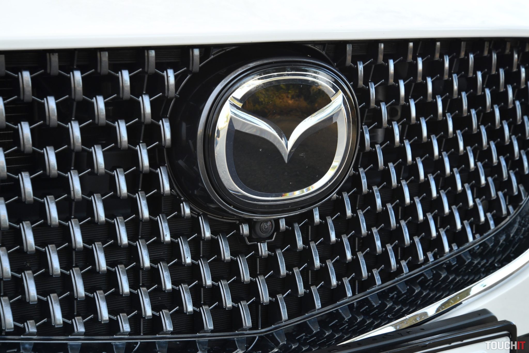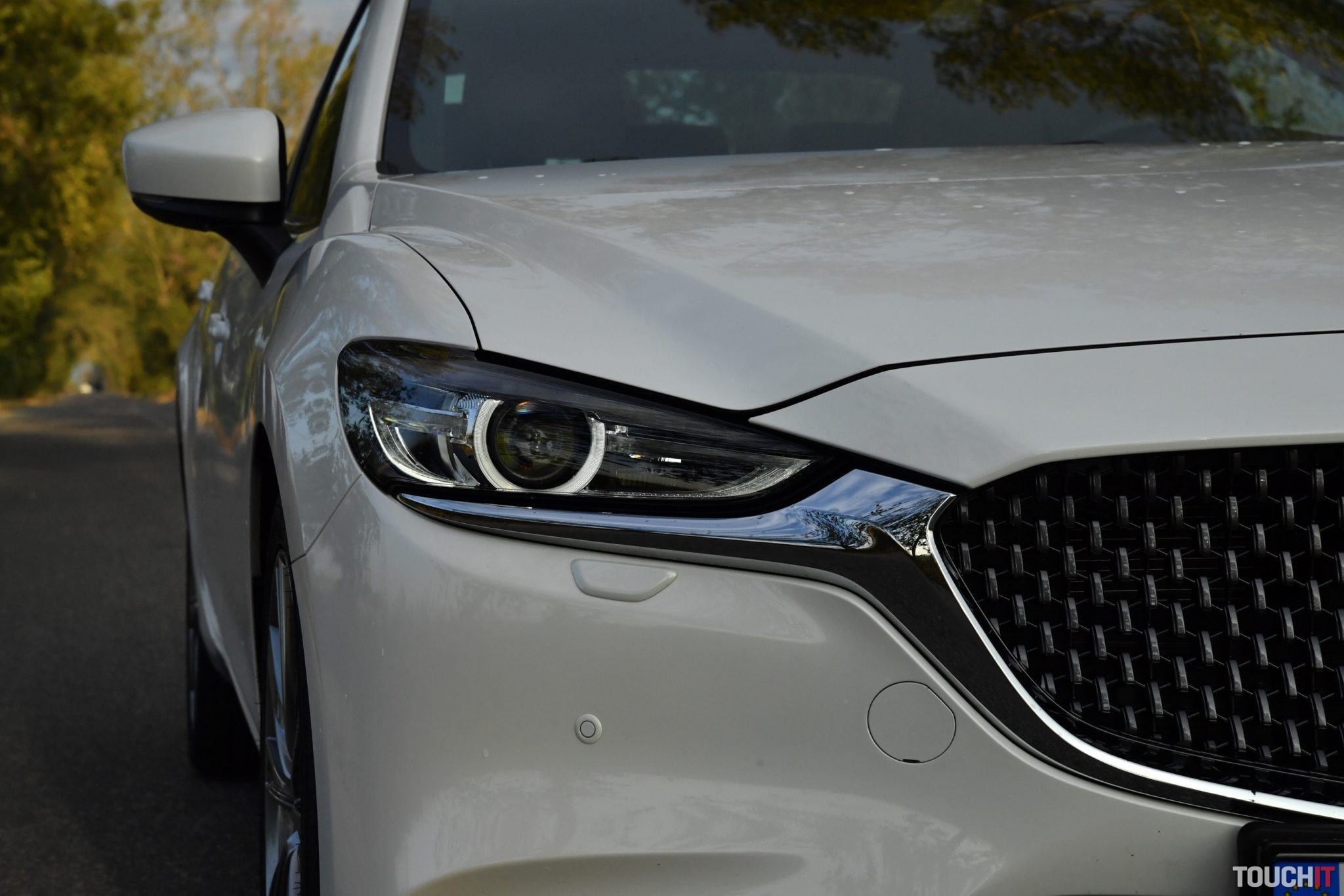 Červenej bolo dosť, k Mazde síce patrí, ale obzerajte sa po tejto bielej, je ako z rozprávky. Pozrime sa na ten dizajn ešte jedným okom. Nejde o žiadnu revolúciu, ale poriadnu evolúciu, ktorá sa podarila. Kompletne prerobená je predná maska, ktorá je výrazne väčšia a má zaujímavý segmentový vzor. Zmenený je aj dizajn oboch nárazníkov – v podstate nezostal kameň na kameni a to je dobre. Ak vedľa seba postavíte novú a predošlú 6ku, tak pochopíte o čom hovorím. Spodok masky chladiča lemuje masívna chrómová lišta, ktorá prechádza až pod adaptívne LED svetlomety. Tie sú viac natiahnuté a užšie.