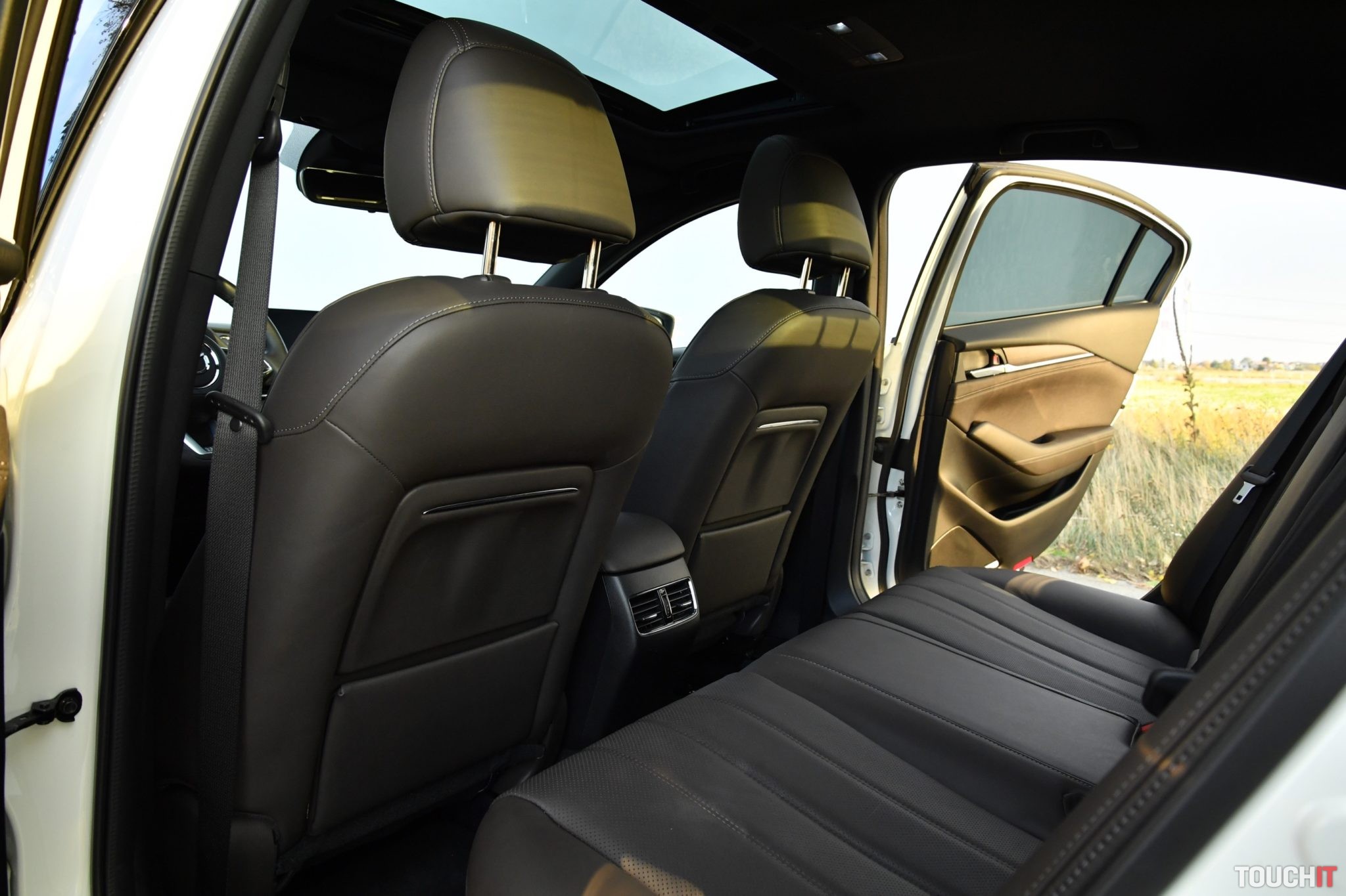 Samozrejmosťou je kožený multifunkčný volant, ktorý je taktiež vyhrievaný. Do toho všetkého zapadá masívny stredový tunel obšívaný kožou, kde sú umiestnené dôležité ovládacie prvky, ako aj volič automatickej prevodovky. Nechýba ani roletkou krytý priestor na 2 poháre, kde sa dajú odložiť aj väčšie smartfóny. Priestoru je dostatok nie len pre pasažierov, ale aj rôzne drobnosti. Vzhľadom na typ karosérie a športovo elegantné línie ma prekvapil aj životný priestor na zadných sedadlách. Sadnem si sám za seba a relatívne pohodlne by som sa cítil aj na dlhšej trase. Dostatok priestoru majú chodidlá, kolená, ale aj hlava. Sedadlá sú príjemne mäkké a veľmi komfortné. Zadní pasažieri so mnou tieto pocity zdieľali. Oceňujem prítomnosť výduchov ventilácie a lakťovej opierky s priestorom na poháre a dvomi USB-A portami na nabíjanie zariadení. V lakťovej opierke sú aj ovládače vyhrievania zadných sedadiel.