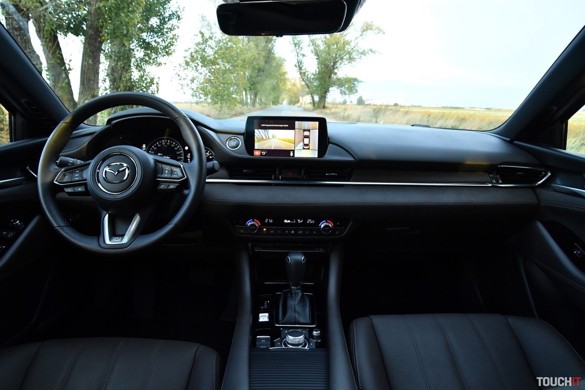 Komfort a technológie Keďže ide o vlajkovú loď, tak tomu musia byť prispôsobené aj komfortné prvky a celková výbava, vrátane pokročilých asistenčných systémov. Základom spokojnosti je 2-zónová automatická klimatizácia, ktorej sekundujú klimatizované/odvetrávané predné sedadlá a vyhrievané predné aj zadné sedadlá. Tie predné sú v „elektrike“ a šoférove s pamäťou na 2 pozície. Samozrejmosťou je kožený multifunkčný volant, 4 elektrické okná s automatickým doťahovaním a bezkľúčový vstup/štartovanie. Centrom nastavení a útočiskom multimédií je systém MZD Connect, ktorý sa ovláda cez veľký 8“ dotykový LCD displej v strede palubnej dosky. Taktiež sa ovláda aj pomocou ovládacích prvkov v stredovej konzole (kruhový ovládač + tlačidlá rýchleho prístupu k dôležitým funkciám). Hlavnému displeju sekunduje 7“ digitálny prístrojový panel pred vodičom, ktorý je obklopený analógovými ukazovateľmi. Celé zobrazenie je veľmi prehľadné, ale ovládanie systému cez združený prístrojový panel (ovládanie na volante) je „v plienkach“. Zobraziť sa toho dá relatívne dosť, čo je výhoda, ale nastaviť takmer nič.