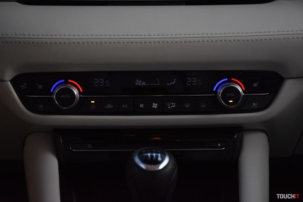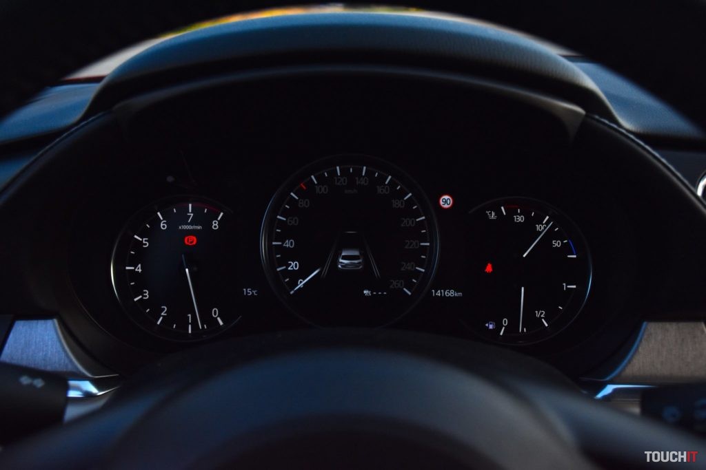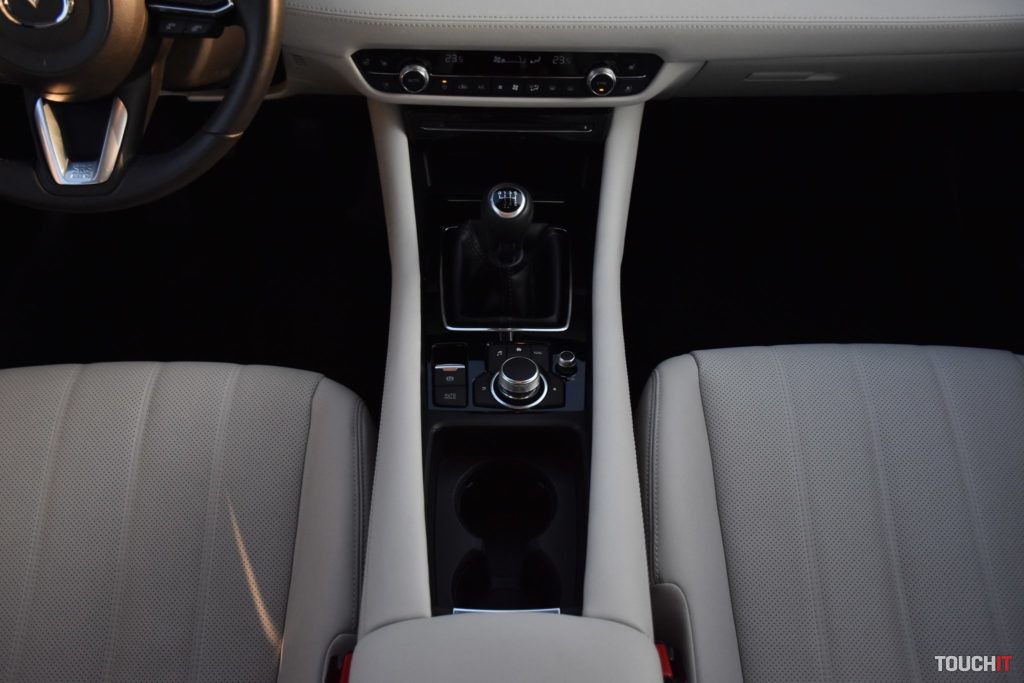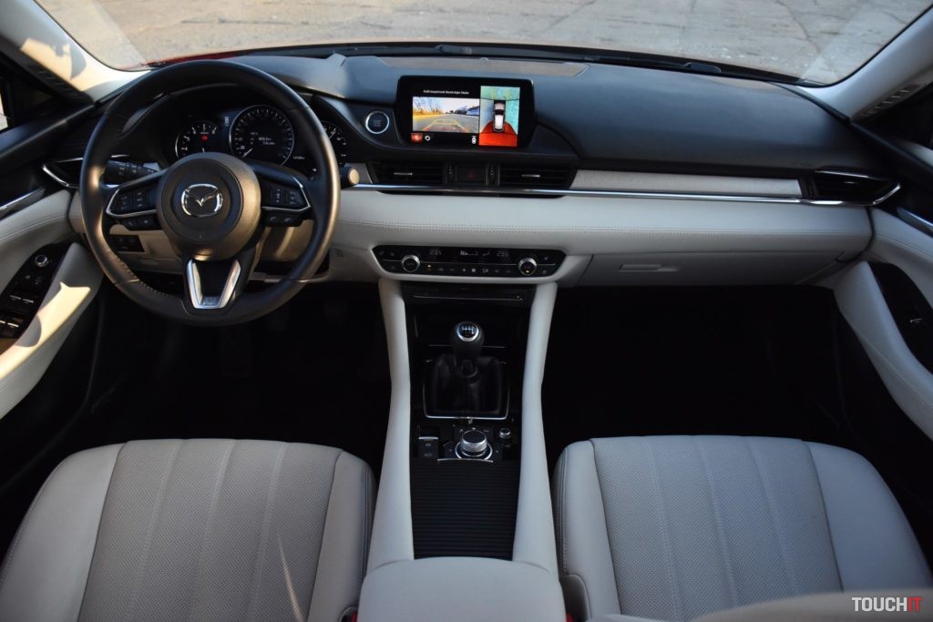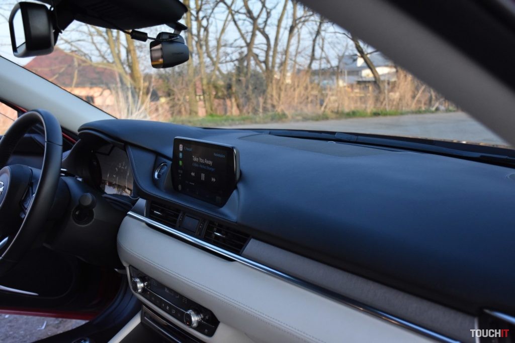 Čo to vo výsledku znamená? Šofér a spolujazdec nepocíti žiadnu zmenu, miesta je tu na rozdávanie a samotný interiér je veľmi pekne a precízne spracovaný, začo hovoria aj použité materiály. Tento model mal krásny bledý interiér a opäť musím pochváliť aj sedadlá alebo skôr maximálne pohodlné kreslá, v ktorých sa sedí veľmi dobre. Mazda sa pýta na dlhé cesty! Sedadlá sú výborné aj vzadu, pričom majú zadní pasažieri dostupné všetky vymoženosti, ktoré by stredná trieda mala ponúkať – vyhrievané sedadlá, USB-A porty na nabíjanie zariadení v lakťovej opierke a nechýba ani samostatný výduch ventilácie. Pocitovo som však mal v kombi verzii menej miesta na nohy ako v sedane. Pripadá mi to tak, ako keby bol viac preferovaný batožinový priestor na úkor pasažierov v druhom rade. Samozrejme, je to iba malý rozdiel, ale podľa mňa tam je – kratšia karoséria a rázvor niečo urobí. No ale ani ten batožinový priestor nie je o toľko väčší. Síce sa dá doňho skrz väčšie dvere dostať rozmernejší náklad, čo je pravdou, ale kapacita je iba o pár desiatok litrov väčšia. Kombi – 522 litrov / Sedan 480 litrov. Výhodou kombi je ľahšia manipulácia s predmetmi v kufri, ale aj to, že sa dajú sklopiť zadné operadlá (takmer do roviny), čím získate objemný priestor na prenos rôznych predmetov. V takomto rozložení je kapacita až 1648 litrov – vrátane priestoru pod podlahou. Toto sedan neponúka, uznávam, ale i tak by som silno rozmýšľal, či kombi alebo sedan, nakoľko limuzína je tak krásna! A ešte keď je v bielej farbe, ako bol prvý testovací model, tak nie je o čom. Interiér je z pohľadu konštrukcie úplne totožný so sedanom,takže všetky informácie a dojmy nájdete v mojej staršej recenzii – TU. Rovnaké je aj rozloženie ovládacích prvkov a v tomto prípade aj stupeň výbavy, ktorá ponúka všetko podstatné, vrátane pokročilých asistenčných systémov. Rozdiel je iba v použitých materiáloch a ich farebnom prevedení. Ešte pred motorizáciou musím spomenúť aj prítomnosť adaptívnych LED svetlometov, ktoré napomáhajú k celkovému komfortu jazdy. Každý svetlomet (hlavný/predný) disponuje 20 svetelnými blokmi, o ktoré sa stará elektronika. Disponujú funkciou automatického prepínania tlmené/diaľkové, a tiež veľmi slušne tieňujú ostatné autá v premávke. Po novom sú hmlové svetlomety zakomponované priamo v hlavnom svetle, vrátane denného LED svietenia. Obrysové svetlomety, ako aj väčšina svetelnej techniky patrí LEDkám. Podstatným rozdielom medzi dvoma testovanými modelmi nebola iba karoséria, ale aj motorizácia. Sedan mal pod kapotou 2,5-litrový atmosférický benzín (4-valec / 193ps), ktorý bol kombinovaný so 6-stupňovým automatom, pričom bol k dispozícii aj režim – sport. Kombi verzia má pod kapotou 2-litrový atmosférický benzín (4-valec), ktorý bol kombinovaný so 6-stupňovou manuálnou prevodovkou. Už počas testu výkonnejšej verzie som hovoril, že tomuto motoru chýba turbo. V tomto prípade to platí dvojnásobne! Výkon benzínového 2-litra je 121 kW (165ps) a max. krútiaci moment 213 Nn. To je papierovo dosť, ale pocitovo nie. Nechápte ma však zle, s týmto autom sa jazdí veľmi dobre a hlavne na výbornú spotrebu, ktorá sa počas testu pohybovala v okolí 7 až 7,5 l/100km, čo je pekný výsledok, ale ak potrebujete nutne a rýchlo dávku výkonu, tak to trvá strašne dlho. Je pochopiteľné, že tento motor si pýta otáčky, ale ani v tých vyšších nie je pružnosť na danú motorizáciu (obsah) ideálna. Jednoducho by to chcelo turbo! Druhou, potešujúcou stránkou je to, že tento motor sa vám okrem dobrej spotreby odvďačí aj dlhou životnosťou. Poddimenzovanie výkonu daného obsahu bude mať na životnosť motora určite príjemný dopad. 6-stupňovej manuálnej prevodovke nie je čo vytknúť, pracuje sa s ňou veľmi príjemne, čo je podstatné. Jednotlivé rýchlostné stupne sú skôr dlhšie, čo je zamerané na úsporu paliva. Prítomný je aj „milovaný“ štart-stop systém, ktorý má označenie i-STOP. Z pohľadu podvozku som oproti sedanu výrazné zmeny nepociťoval, je veľmi komfortný a pekne žehlí väčšinu nerovností. Wagon bol obutý na rovnakých 19“ kolesách ako sedan (pneumatiky 225/45/R19). Nové modely sú (konečne) lepšie odhlučnené aj od motorovej časti i podvozku, čo spríjemňuje akustický komfort v kabíne. Multimédiá Stredobodom pozornosti je 8“ dotykový LCD displej v strede palubnej dosky, ktorý pracuje za podpory operačného systému MZD Connect. Tento displej je síce dotykový, ale ovládať sa dá iba vtedy, ak auto stojí a je vyradená rýchlosť. Počas jazdy je možné systém ovládať iba pomocou združeného kruhového ovládača v stredovej konzole, ktorý má po bokoch aj tlačidlá rýchleho prístupu k najpoužívanejším funkciám (navigácia, telefón, hudba). Prečo? Bezpečnosť! Ovládanie pomocou tohoto prvku je bezproblémové a dá sa na to veľmi rýchlo zvyknúť. Jeho výhodou je dobré umiestnenie. Hlavnému displeju sekunduje 7“ digitálny prístrojový panel pred vodičom, ktorý je obklopený analógovými ukazovateľmi. Celé zobrazenie je prehľadné, ale ovládanie systému cez združený prístrojový panel (ovládanie na volante) je v plienkach. Zobraziť sa toho dá veľa, ale nastaviť takmer nič. To by chcelo slušný update. Okrem dvoch klasických zobrazovacích plôch je k dispozícii aj projekčný Head-Up displej, ktorý vyniká slušnou grafikou. Vidíte na ňom všetky dôležité informácie o systémoch vozidla, navigácii a pod. K multimédiám nepochybne prislúcha aj konektivita, ktorá má bohaté zastúpenie. Základom je Bluetooth, 2 USB-A porty, SD slot, 3,5 mm audio konektor, CD mechanika a 12V zásuvka – vpredu. Ešte bezdrôtové nabíjanie a bude to skvelé