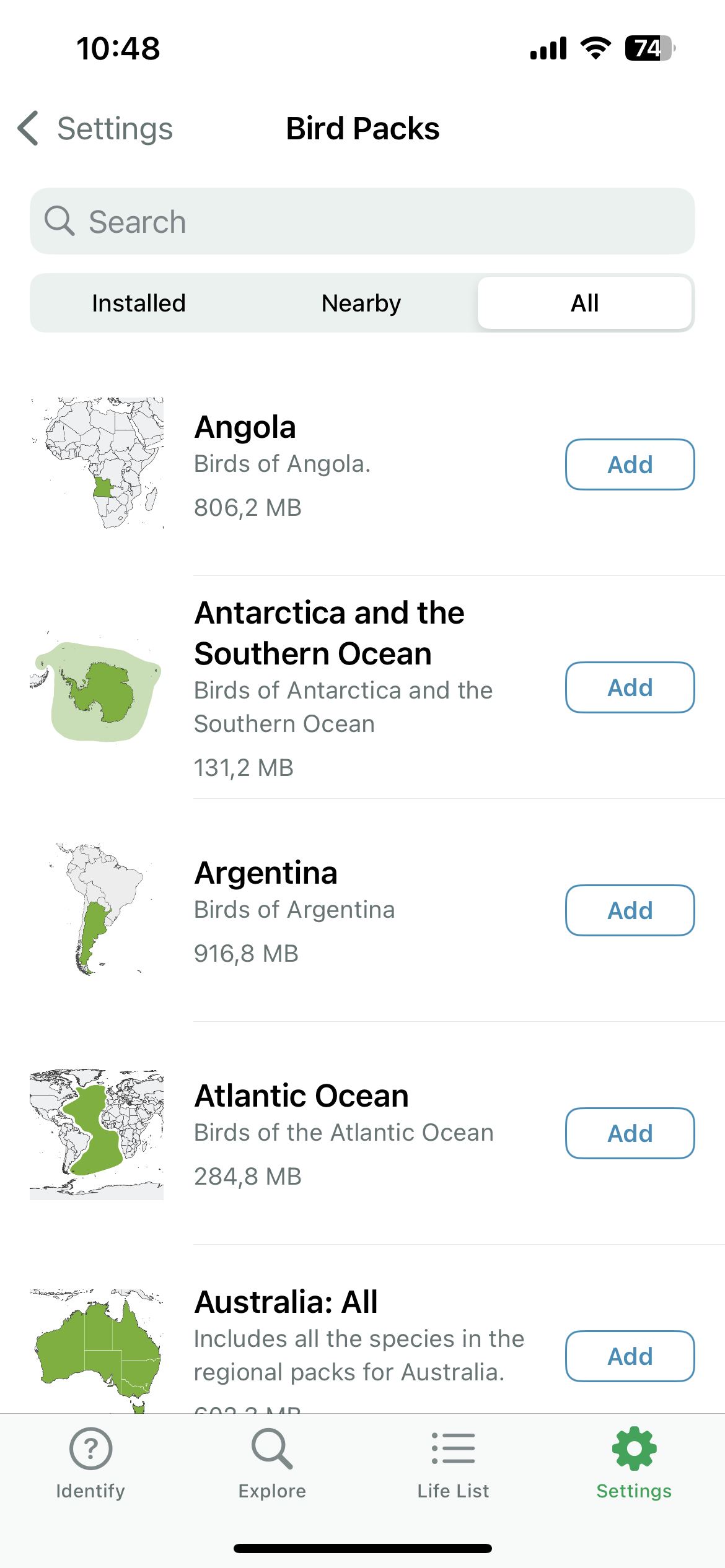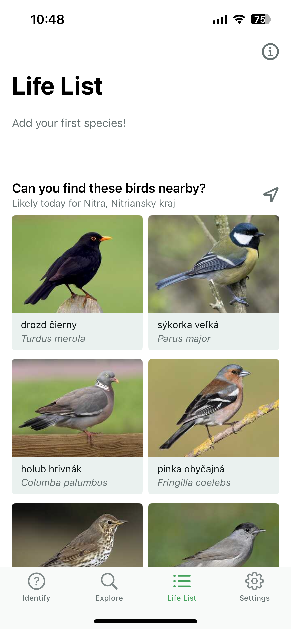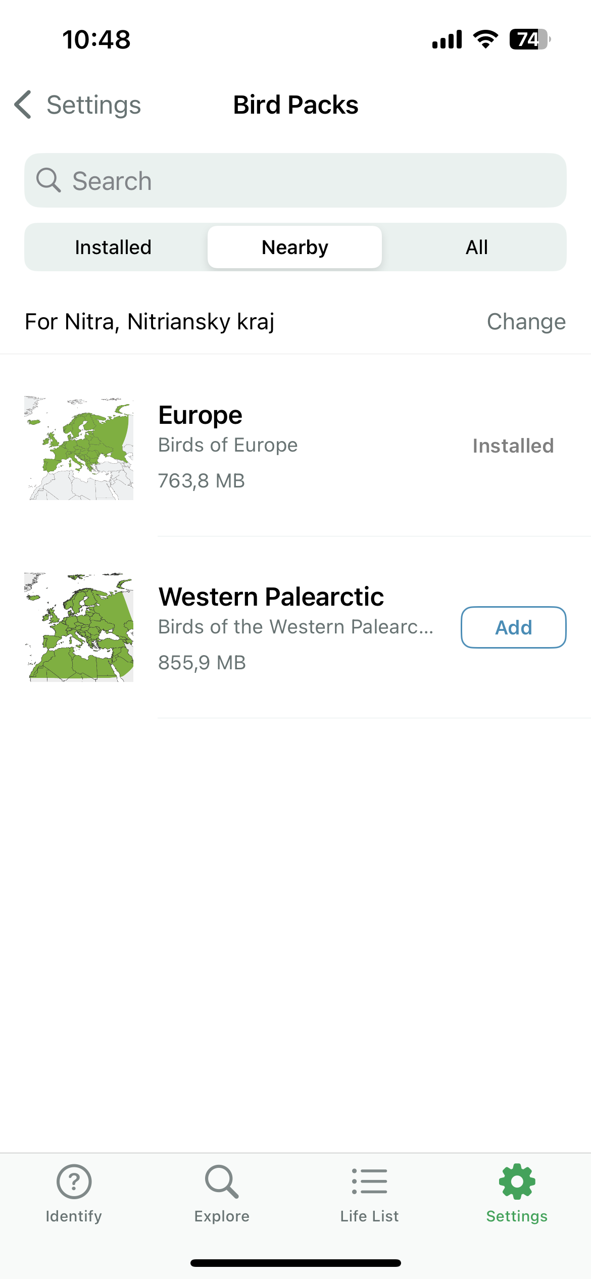 Popisy vtákov a celá aplikácia je v anglickom jazyku, no v nastaveniach si viete zmeniť jazyk primárneho označenia druhu vtáka aj do slovenčiny, čo dosť pomôže. Okrem databázy vašich vyhľadávaní nájdete v aplikácii aj kompletnú databázu (tú, ktorú máte stiahnutú) vtáctva s označením druhu, podrobnejším popisom, fotografiami a zvukovými nahrávkami.