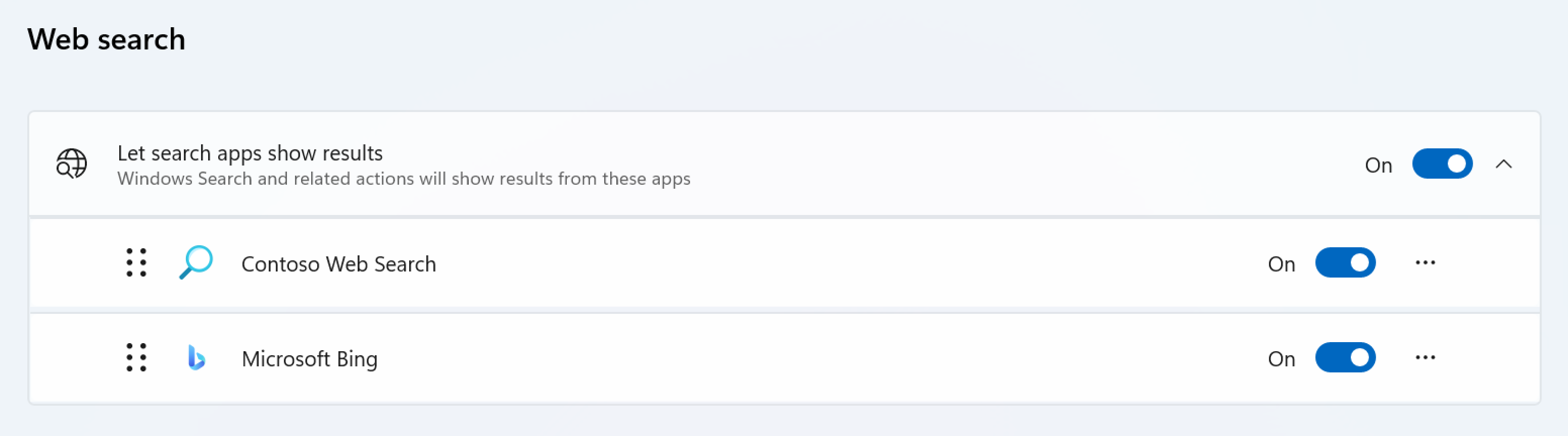 Úpravy systémových nastavení sa začnú uplatňovať od júla. Vyhľadávanie na webe cez službu Windows Search bude takisto aktualizované. Aplikácia bude rešpektovať predvolený vyhľadávač a takisto bude možné v nastaveniach systému jednotlivých poskytovateľov preusporiadať.