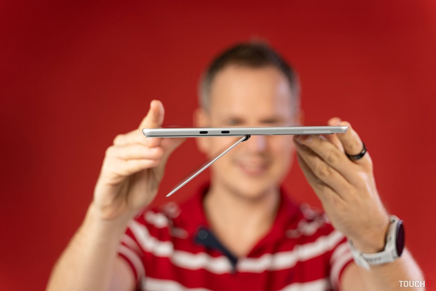 V tomto režime som ocenil, že tablet nemá zabudovanú klávesnicu. Keď je položený na stojane vedľa externého monitora, jeho displej mám bližšie v porovnaní s tradičnými notebookmi. USB-C takisto umožňuje napájanie tabletu.