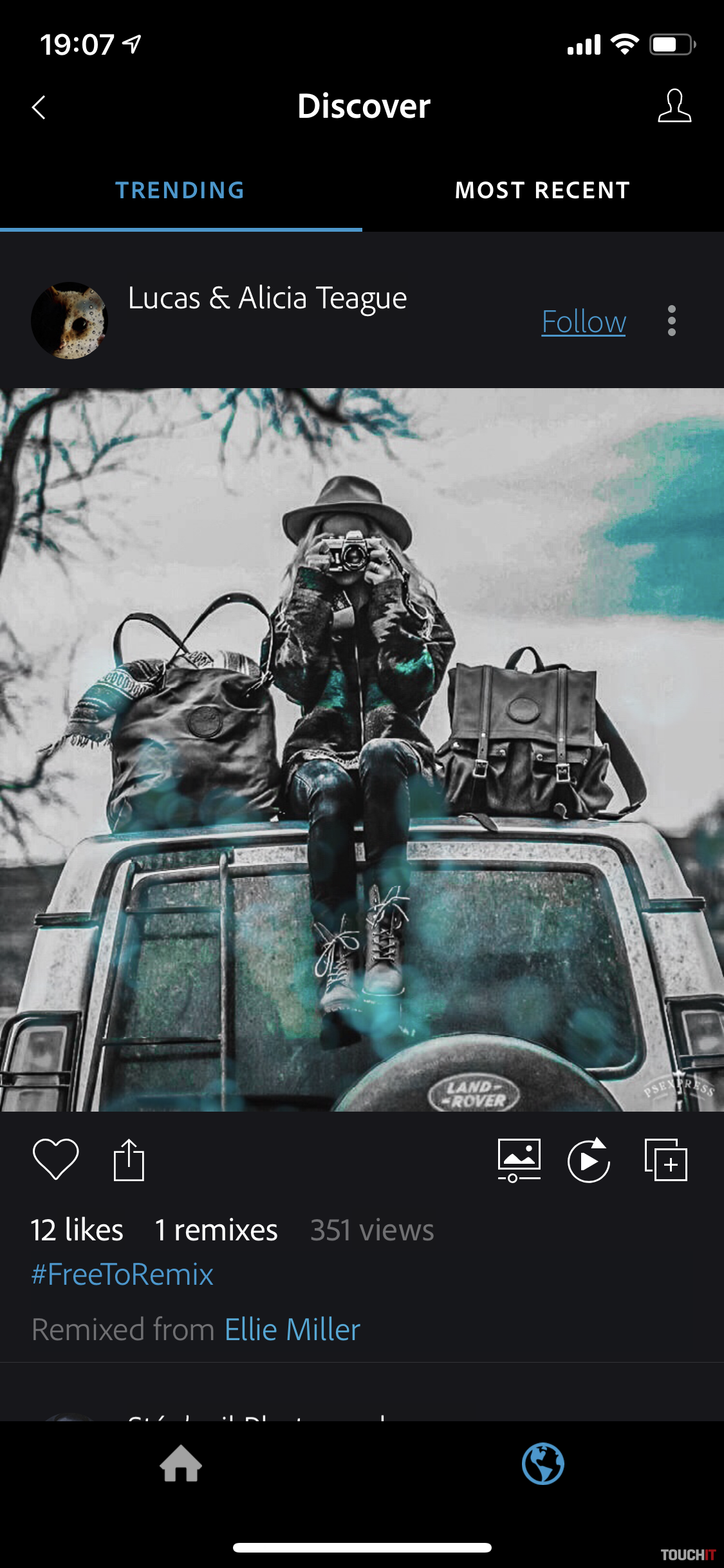 „Ak kliknete na ikonu zemegule v úvode aplikácie, tak sa môžete inšpirovať fotkami, ktoré zdieľali na internú Adobe sieť iní používatelia. Celkom pekné výtvory sa tam dajú nájsť 🙂“