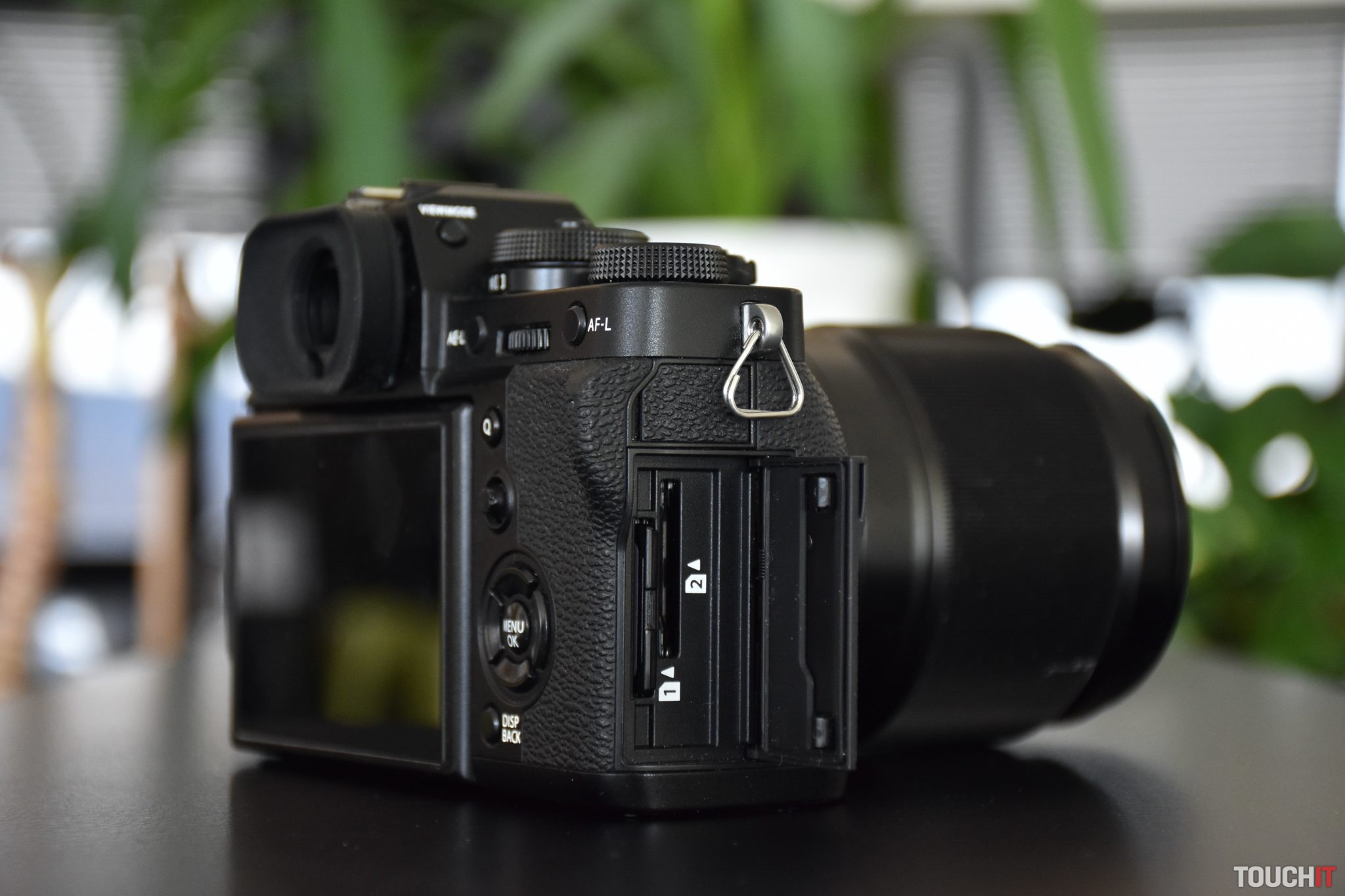 Zadná časť je jednoduchou klasikou, kde nájdete dôležité ovládacie prvky – uzamknutie expozície/zaostrenia, koliesko krokového doladenia hodnoty ISO, tlačidlo rýchleho Quick Menu (Q), malý joystick atď. Dôležitým prvkom je Quick Menu, ktoré si môžete prispôsobiť podľa seba, pričom získate rýchly prístup k najpotrebnejším funkciám – bez nutnosti návštevy menu. Opomenúť nemôžem ani 3-palcový – plne dotykový LCD displej, ktorý pokrýva 100% snímanej scény. Displej má kovový pánt, takže sa dá čiastočne vyklopiť dohora (nie do selfie režimu) a do boku, vďaka čomu je práca v teréne (podhľad a pod.) jednoduchšia. Nie je to zlé, ale radšej by som prijal kĺb, aby som sa videl napr. počas natáčania videa a pod. Nový model – X-T4 – túto možnosť ponúka. Za výhodu považujem aj 2 sloty pre SD karty v pravom boku. Ak si ceníte vaše zábery, resp. fotíte prevažne „neopakovateľné“ zákazky, tak toto je nutnosťou. Na opačnej strane sú kryté porty, kde nájdete 3,5 mm audio vstup pre slúchadlá (monitor), 3,5 mm audio výstup pre externý mikrofón, 2,5 mm port pre diaľkovú spúšť, HDMI (micro – typ D) a hlavne USB-C konektor, ktorý je nielen dátový, ale aj nabíjací, čo som ocenil najmä počas výletov. Veľmi často som „fudžinu“ nabíjal v aute, počas prejazdov, prostredníctvom bežného USB-C kábla, čo je veľmi dôležitá možnosť – najmä ak veľa cestujete a pod. Taktiež sa dá nabiť aj prostredníctvom silnejšej power-banky.