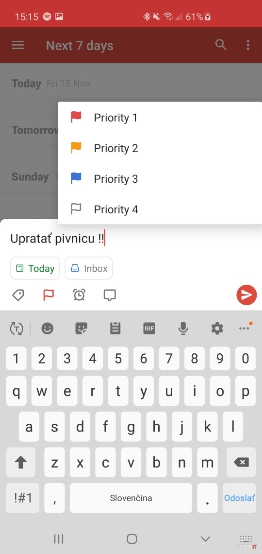 Nepotrebujem super premakané prostredie s možnosťami zameranými na komentovanie a priraďovanie úloh. Je to tu ale funkcie sú tak postavené, aby neprekážali. Zadanie úlohy, priradenie dátumu ak chcete, prípadne projektu. Projektom sa myslí zatriedenie, aby bolo vidno, či ide o pracovné veci, dovolenku alebo nejakú záľubu. No a nechýba trojstupňové definovanie priority.