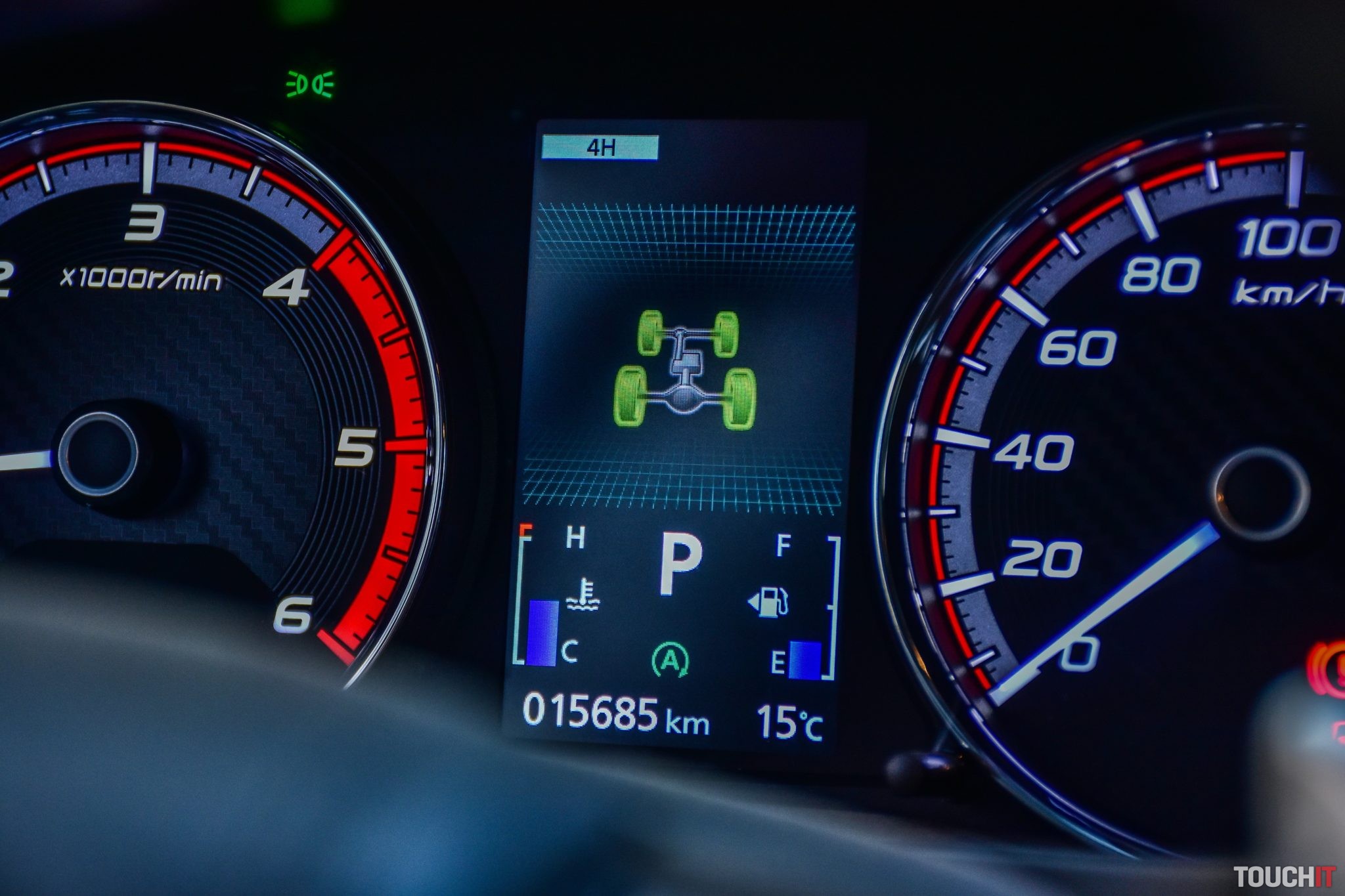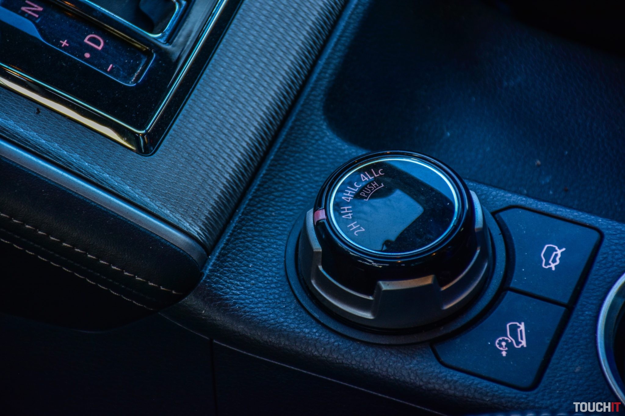Následne je k dispozícii automatický režim 4WD, presnejšie Super Select 4WD-II, ktorý je špecifický najmä redukciou 4LLC (1:2,566), ktorá vám bude nápomocná v tom najnáročnejšom teréne. Dostupný je aj režim 4HLc. Okrem toho je možné využiť aj rôzne nastavenia správania sa elektroniky podľa terénnych podmienok – Gravel, Mud/Snow, Sand, Rock. Je však dobré vedieť, že so zapnutou uzávierkou diferenciálu zadnej nápravy nie sú tieto režimy k dispozícii, tá je im nadradená. Ako som už naznačil, L200 ponúka už v základe uzávierku medzi-nápravového diferenciálu (Torsen LSD) + elektromagneticky ovládanú uzávierku zadného diferenciálu. Toto je vysoko nadpriemerný základ, ktorý vás dostane na rôzne odľahlé miesta (nezabúdajme však, že veľmi dôležitou súčasťou sú kvalitné pneumatiky).