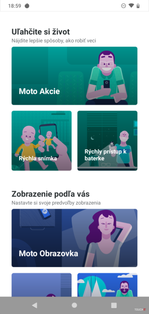 Operačný systém je Android 9 a ako už býva zvykom, je tu čistý Android. Nechýba nadstavba Moto, kde nájdete užitočné rozšírenia na ovládanie smartfónu pohybmi. Oceníte aj zobrazovanie notifikácie na tmavom displeji po príchode nových upozornení ako aj automatické rozsvietenie tmavej obrazovky, keď budete v blízkosti telefónu.