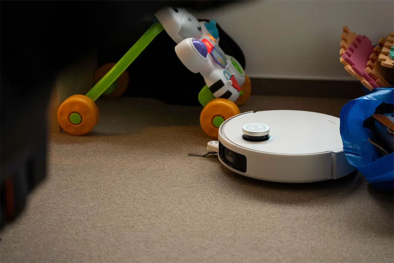 V redakcii máme koberce a preto tu výborne fungovala funkcia odpojenia mopovacích kotúčov. Vysávač ich dokáže automaticky odpojiť a nechať v dokovacej stanici. Vďaka tomu vysáva bez toho, aby mal pripojené kotúče. Je to užitočná vlastnosť, pokiaľ máte domácnosť, kde v jednej miestnosti sú najmä koberce a ďalšia miestnosť je tvrdá podlaha alebo kachličky, ktoré treba vymopovať.