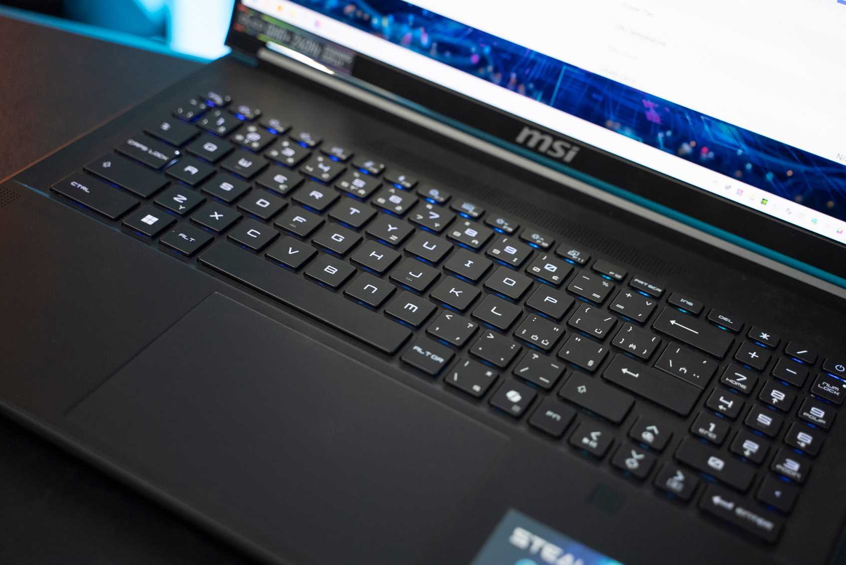 Súčasťou klávesnice je tlačidlo Copilot, ktoré odstránilo pravý kláves Ctrl. Výrobca umiestnil na šípky doplnkové funkcie, pričom jedna z nich je možnosť zvýšiť otáčky ventilátora na maximum.
