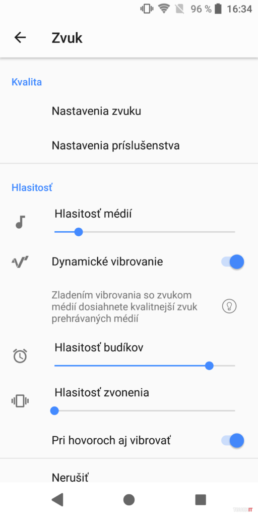 Pri používaní dynamických vibrácií sa snaží Xperia XZ2 zladiť basy v pesničkách a vo videách s vibráciami telefónu. V praxi to funguje dobre, nie každému sa však takéto kombinácia bude páčiť. Ide totiž o pomerne špecifický zážitok, za skúšku však určite stojí. Najmä sledovanie ukážok z filmov je vďaka tejto funkcii atraktívnejšie, aj keď celovečerný film by sme asi takýmto spôsobom nepozerali. Funkcia Dynamické vibrovanie nefunguje vo všetkých multimediálnych aplikáciách a takisto nefunguje ani vo všetkých hrách. Väčšina aplikácií na prehrávanie hudby či videa ju však podporuje. Hry často využívajú vlastný systém vibračnej spätnej väzby, ale niektoré sa dokážu synchronizovať aj cez Dynamické vibrovanie. Dodajme, že funkcia nefunguje, keď je vypnutý displej, aktivovaný režim STAMINA alebo keď je telefón v tichom režime. Bez ohľadu na to, či túto funkciu využijete alebo nie, väčší vibračný motorček v Sony Xperii XZ2 určite oceníte počas bežného používania telefónu. Aj tradičné vibrácie, ktoré upozorňujú na notifikácie, sú totiž silnejšie. Nemalo by sa tak stať, že zmeškáte dôležitú udalosť, lebo ste necítili zavibrovať telefón vo vrecku. Prečítajte si aj: https://touchit.sk/multimedialne-funkcie-v-sony-xperia-xz2-reproduktory-a-zvuk-2-cast/177515