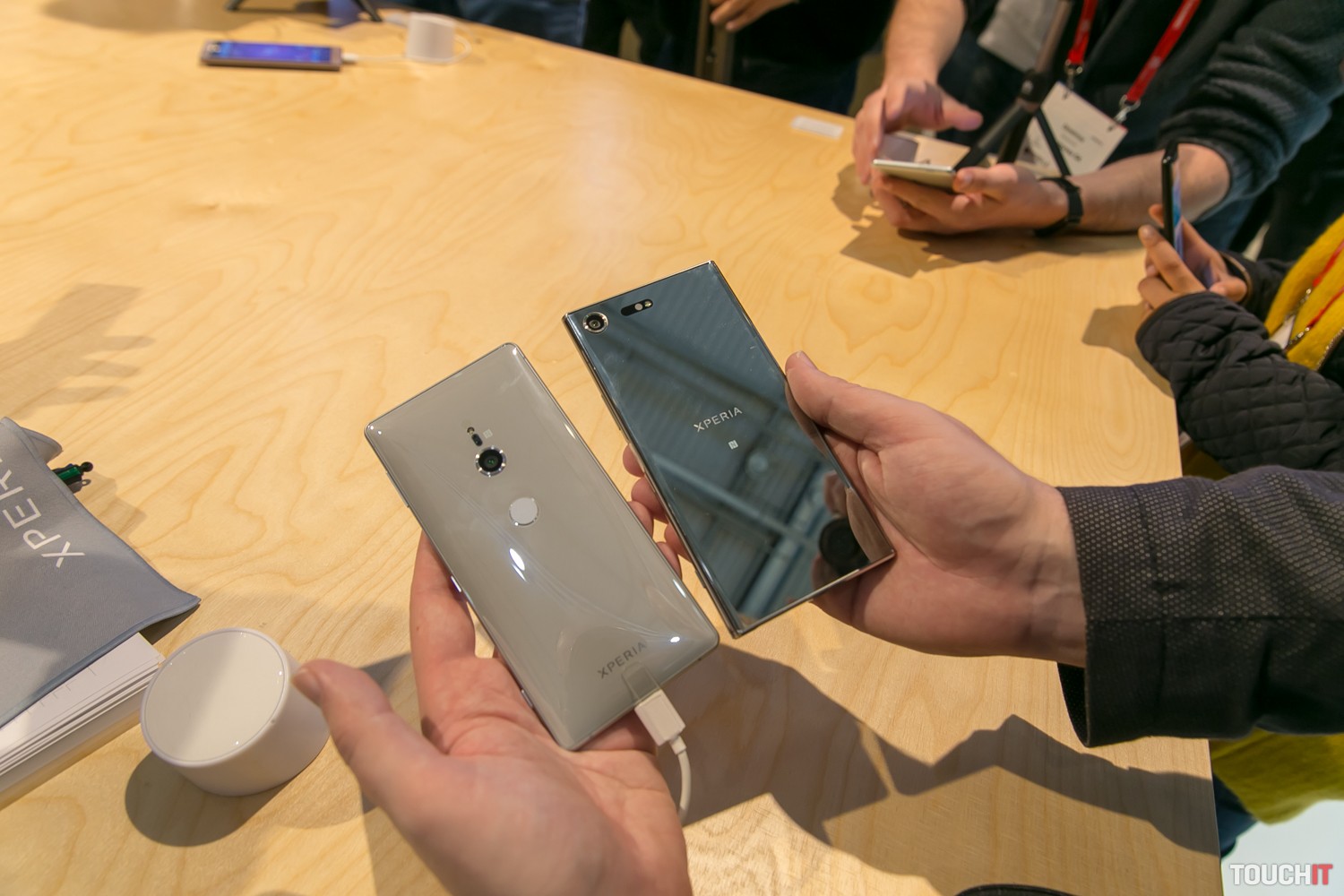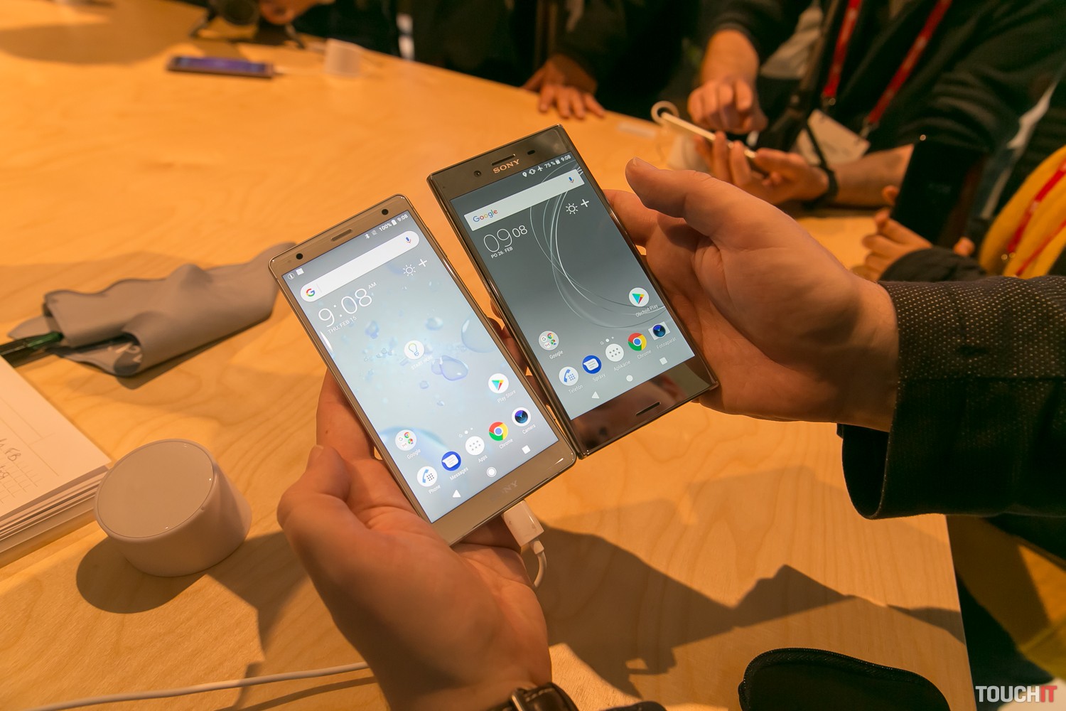 Porovnanie Xperie XZ2 (vľavo) s Xperiou XZ Premium (vpravo). Všimnite si zmenu dizajnu