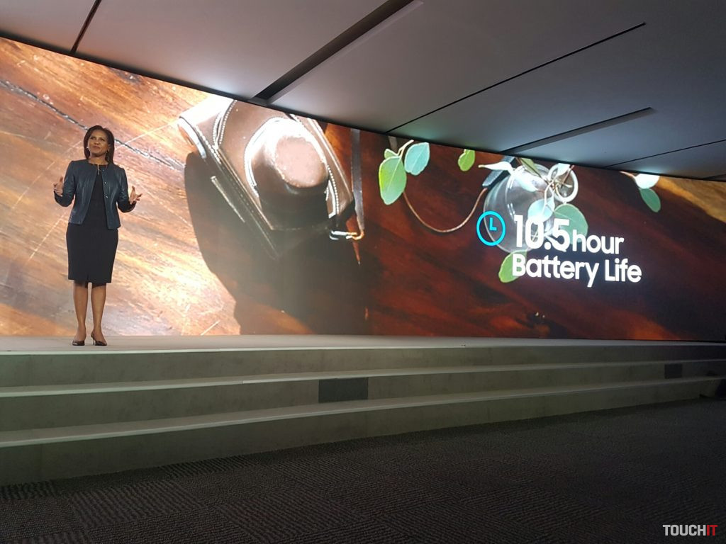 Na pódium bola pozvaná aj Peggy Johnson z Microsoftu – samozrejmosťou Galaxy Booku je OS Windows, na prácu ideálne.