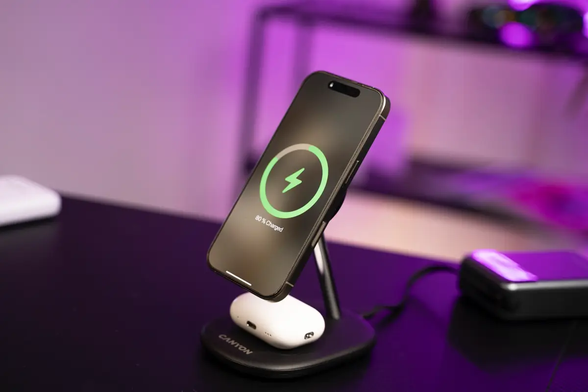 Nabíjacia stanica Canyon OnCharge 205 má elegantný dizajn, vďaka ktorému doplní nejeden pracovný stôl. Podporuje bezdrôtové magnetické nabíjanie Qi2, vďaka čomu je kompatibilná s iPhonmi, AirPodmi, no aj akýmikoľvek inými zariadeniami s podporou tohto nabíjania. Smartfóny je možné nabíjať pri maximálnom výkone 15 W, slúchadlá AirPods pri výkone 5 W. Do elektriny stanicu pripojíte vďaka priloženému adaptéru a káblu USB-C na USB-C. Cena tejto stanice je len 74,99 eura.