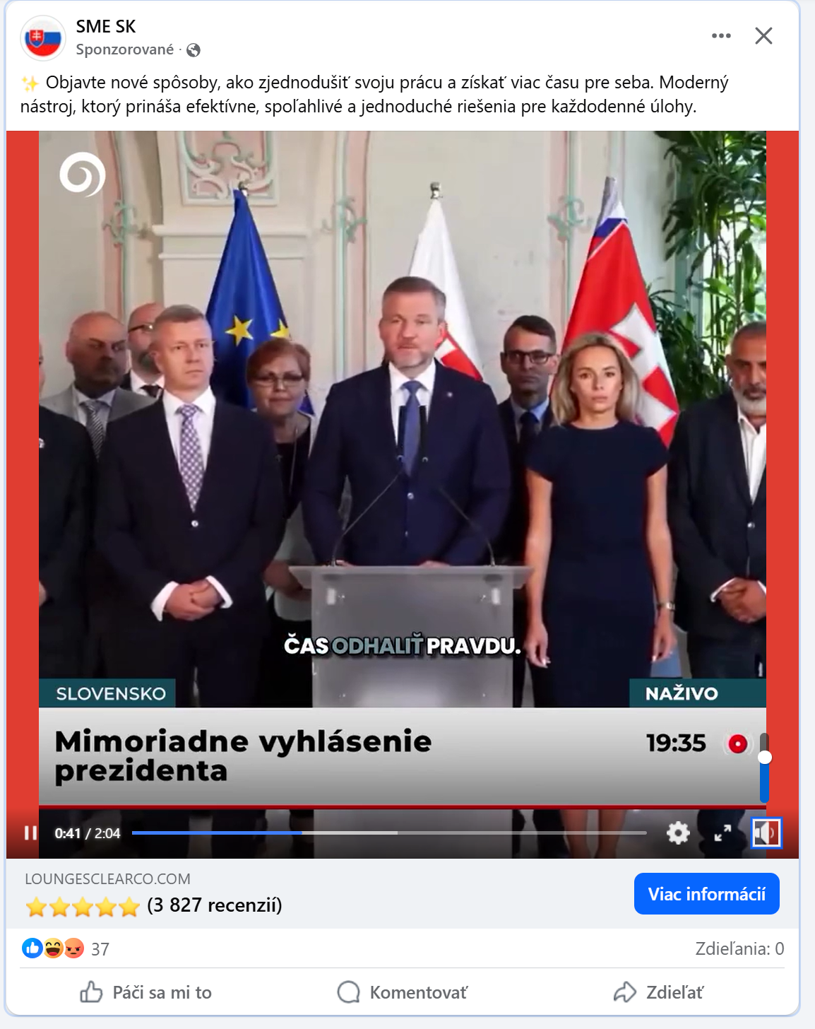Pomocou umelej inteligencie a deepfakov vystupovali známe osobnosti, ako napríklad prezident Peter Pellegrini alebo riaditeľ spoločnosti ESET Richard Marko. Tieto reklamy propagovali „tajné“ investičné príležitosti, zázračné výživové doplnky či právnu pomoc. Ako už však názov napovedá, tí, ktorí sa nechali nalákať na podvod, skončili bez peňazí, produktov aj služieb.