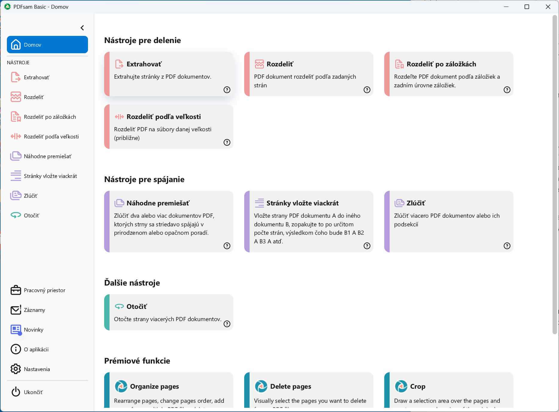 Ide o podobnú aplikáciu ako v predchádzajúcom prípade, kedy sú hlavné funkcie rozdelené do samostatných dlaždíc a vždy si vyberiete, čo konkrétne chcete s dokumentom urobiť. Nie je potrebné ho inštalovať a je to open-source aplikácia, ktorá funguje úplne zadarmo.