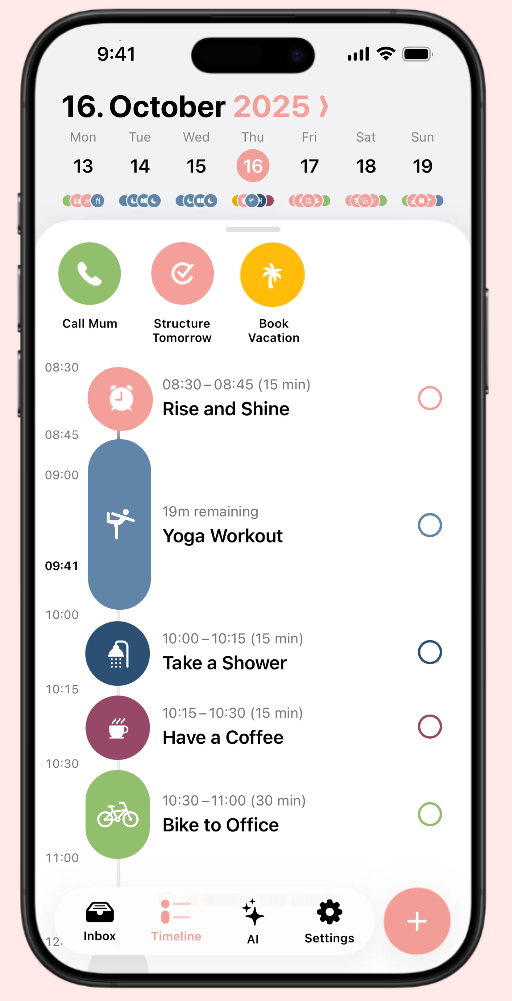 Vždy vidíte, koľko času vám úloha zaberie. Môžete ju obohatiť charakteristickou ikonou, upraviť jej farbu a mať pohľad na celý deň alebo najbližšie hodiny. Všetko je extra prehľadné práve na základe týchto farebných grafických odlišností.