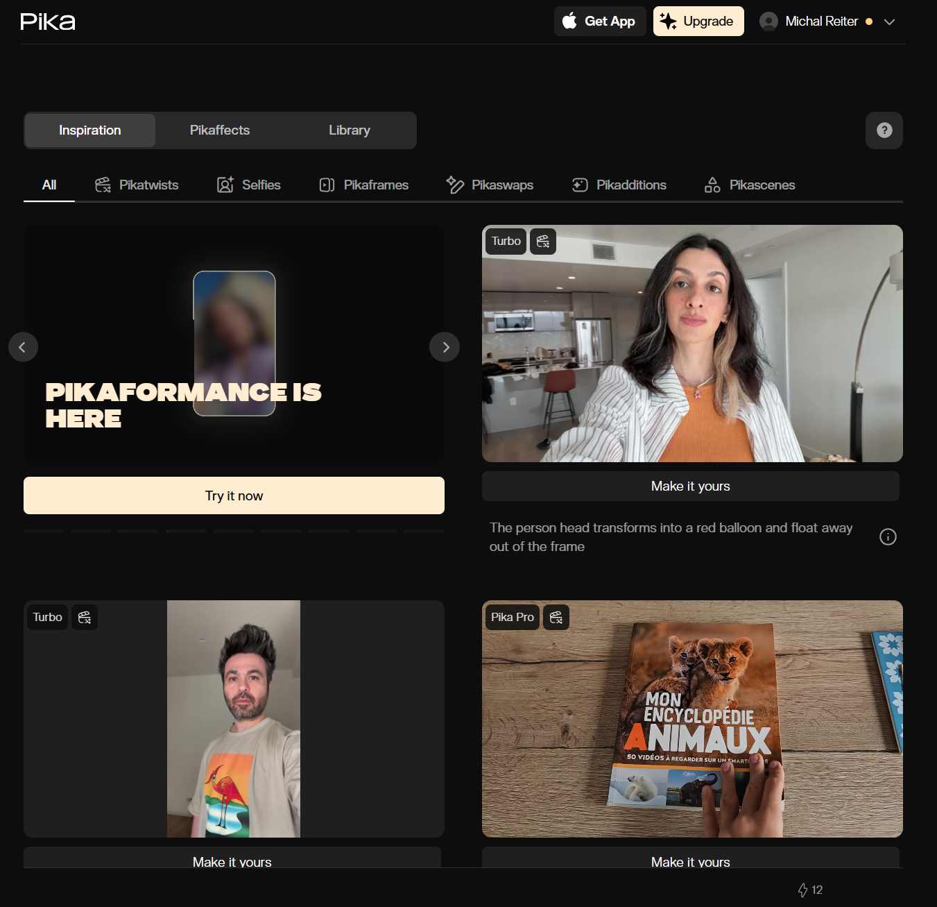 Pika je ľahko použiteľný nástroj na rýchlu tvorbu krátkych videí, animácií a vizuálov pre sociálne siete. Na skúšku sa dá použiť aj zadarmo ale rýchlo si miniete 80 kreditov, ktoré na začiatok dostanete. Ponúka viacero oblastí, v ktorých môžete tvoriť – Pikaeffects, Pikaframes, Pikascenes, text / image – to video atď. Pri každom segmente nástroj minie rôzny počet tokenov.