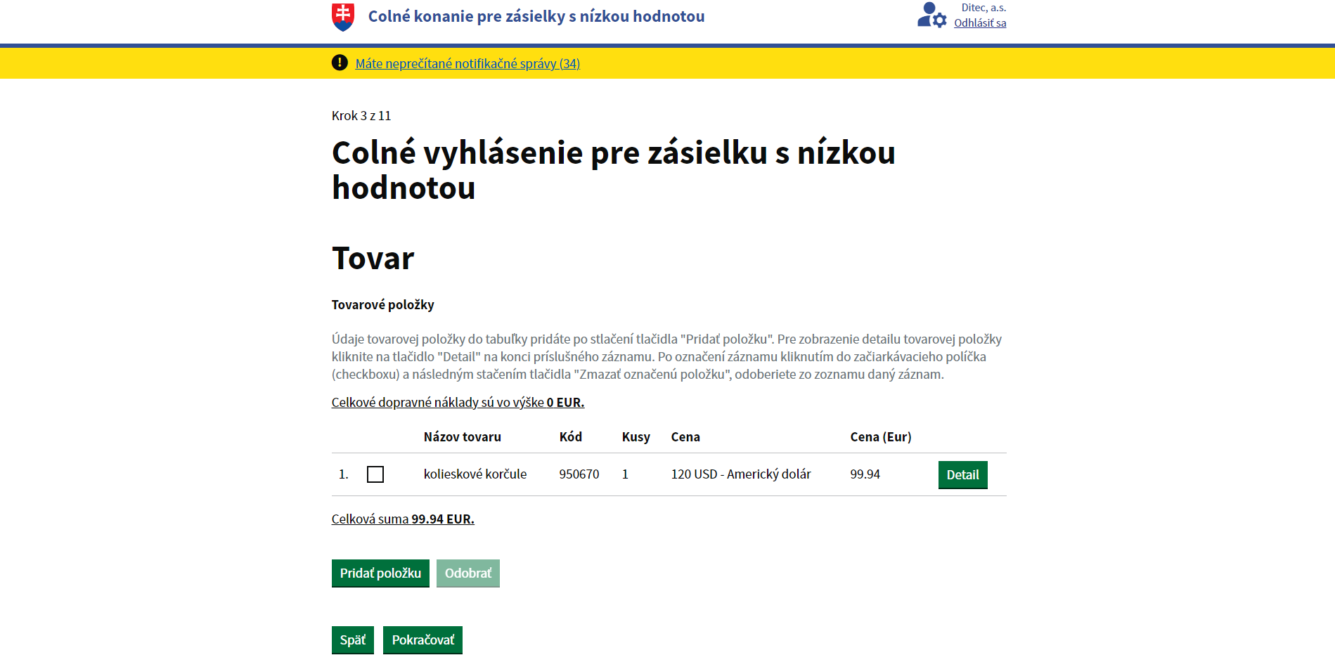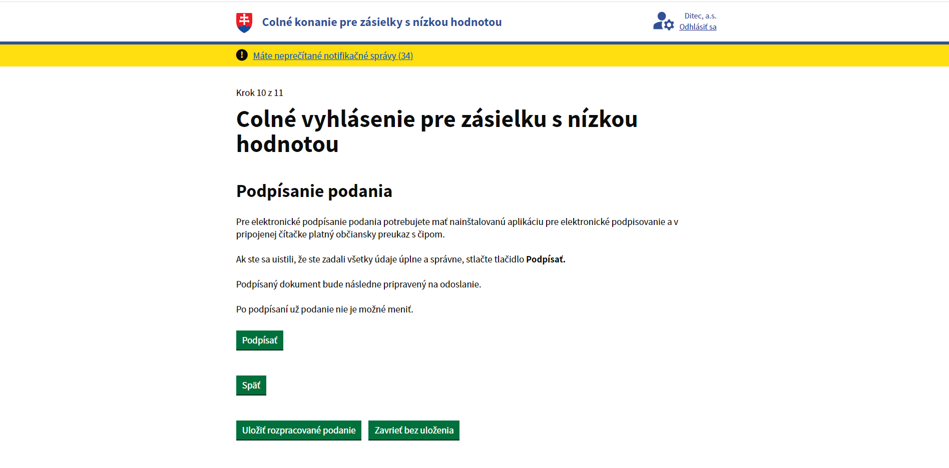Tiež potrebujete údaje o predajcovi, od ktorého tovar nakupuje. Ak budú všetky doklady v poriadku, určí poplatok a ten zaplatíte. Podanie Elektronické colné vyhlásenie potvrdíte svojím kvalifikovaným elektronickým podpisom. Následne sa zásielka prepustí a bude vám doručená.