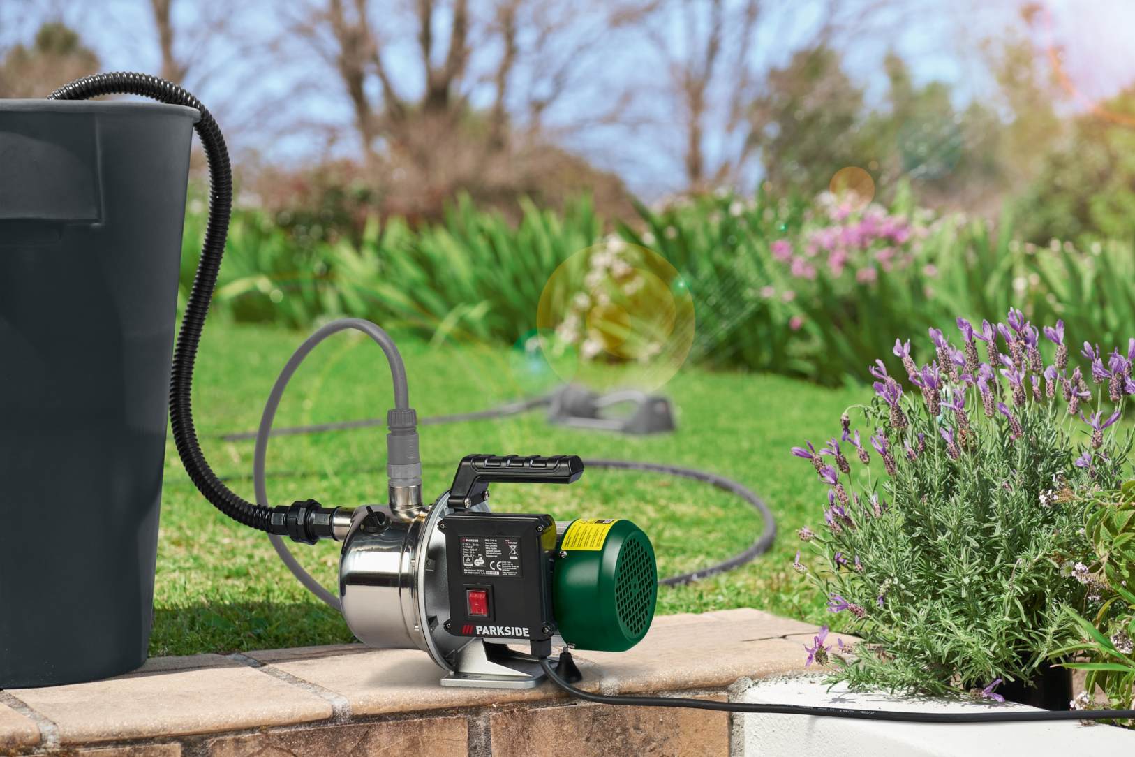 Sada záhradného čerpadla PARKSIDE premení každý sud na dažďovú vodu na efektívny zdroj vody. Výkonná 1100-wattová pumpa v robustnom nerezovom tele čerpá až 4600 l/h a je ideálna pre veľké záhrady alebo proti odolným nečistotám. Stačí pripojiť saciu hadicu a tlakové potrubie a voda prúdi potrubím pri tlaku 4,5 bar. Vďaka suchobežnej ochrane a integrovanému filtru beží pumpa spoľahlivo „ako hodinky“, aj pri nepretržitej prevádzke.