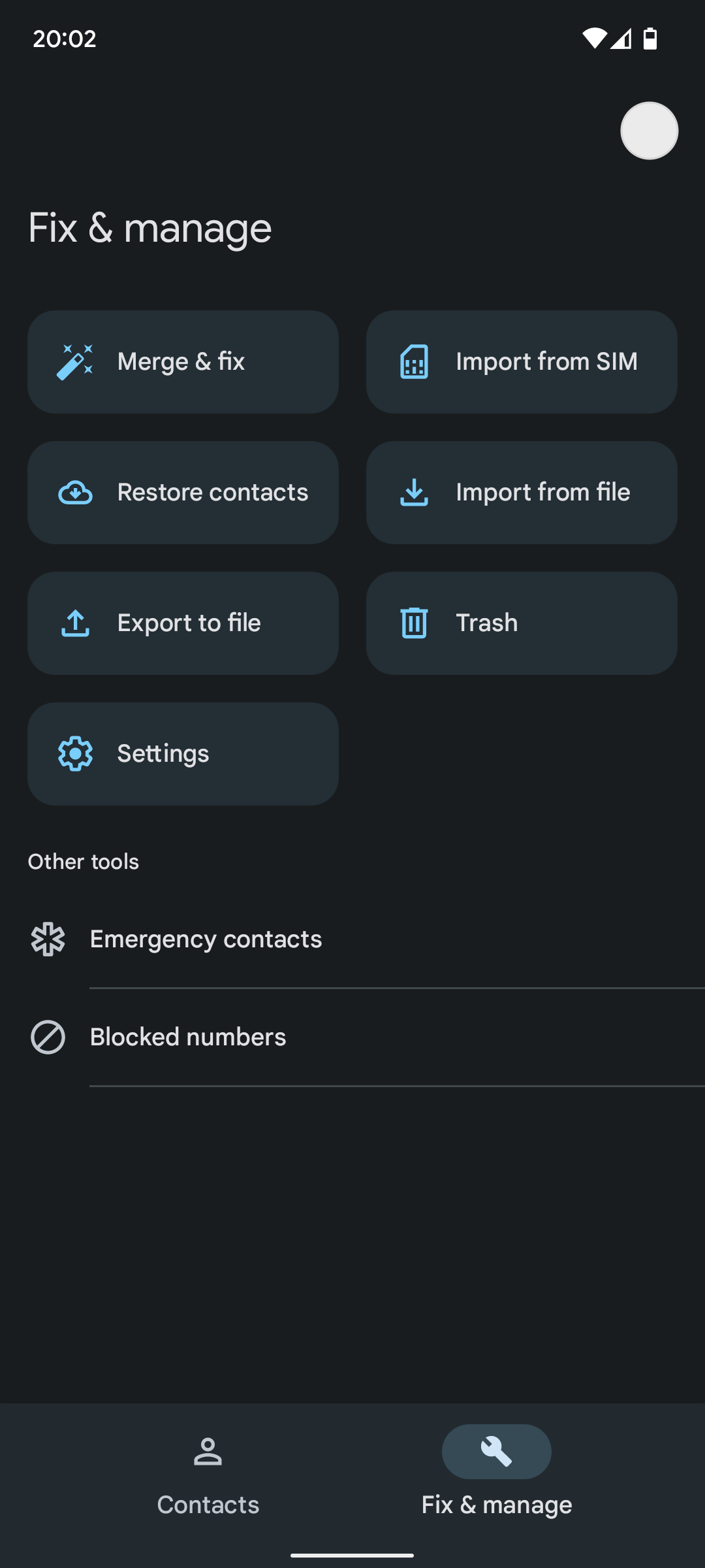 V záložke „Opraviť a spravovať“ sú obsiahnuté viaceré funkcie, ku ktorým bol predtým prístup iba cez hlavnú ponuku, alebo priamo cez nastavenia. Spodná lišta so svojou ponukou by mala používateľom poskytnúť pohodlnejší prístup ku všetkým funkciám, ktoré vám pomôžu vyčistiť prebytočné alebo duplicitné kontakty.