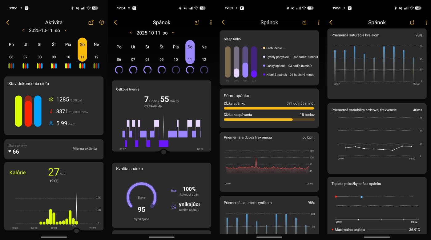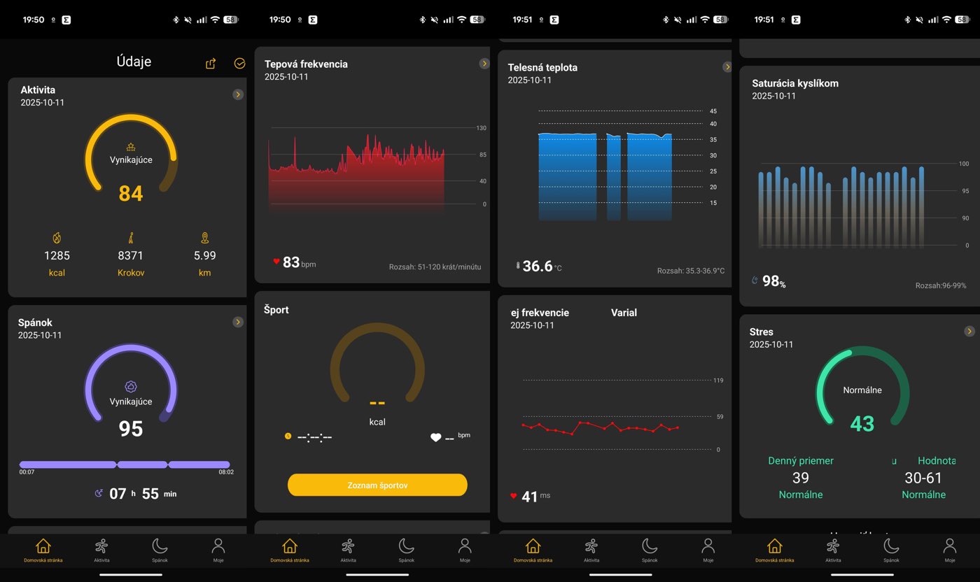 Počas môjho testovania som si nevšimol výrazné odchýlky z hľadiska času zaspávania a zobudenia. Celkové trvanie spánku tiež do veľkej miery zodpovedalo realite. Spoľahlivosť merania prebudení a času bdenia však boli horšie v porovnaní s drahšími prsteňmi či smart hodinkami. Presnosť merania variability srdcového tepu bola v mojom prípade priemerná, nameraný priemerný tep bol o 3 údery vyšší v porovnaní s inými zariadeniami.