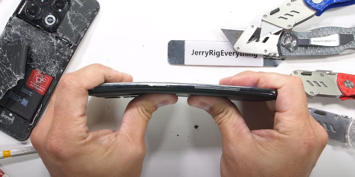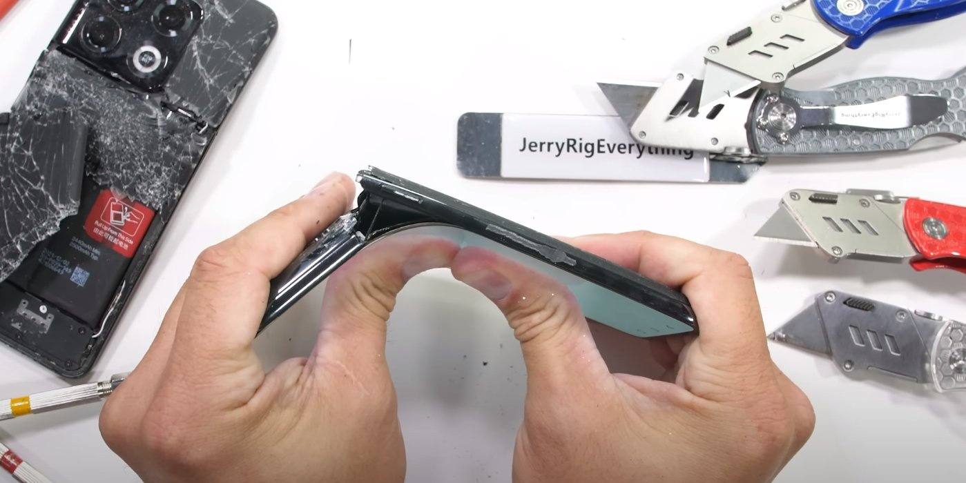 Udialo sa tak aj napriek tomu, že plastový rám telefónu je oproti OnePlus 10 Pro o niečo hrubší. To dávalo aspoň malú nádej na to, že tuhosť novinky by sa mohla vyrovnať starším modelom OnePlus 8 Pro a 9 Pro. Aj keď prvé pokusy ohnúť OnePlus 10T zozadu vyzerali nádejne, pri ohýbaní spredu sa telefón zlomil. Veľmi nelichotivo vyzerali aj okamžite odpojené konektory, ktoré sa nachádzali práve v mieste, kde sa OnePlus 10T zlomil.