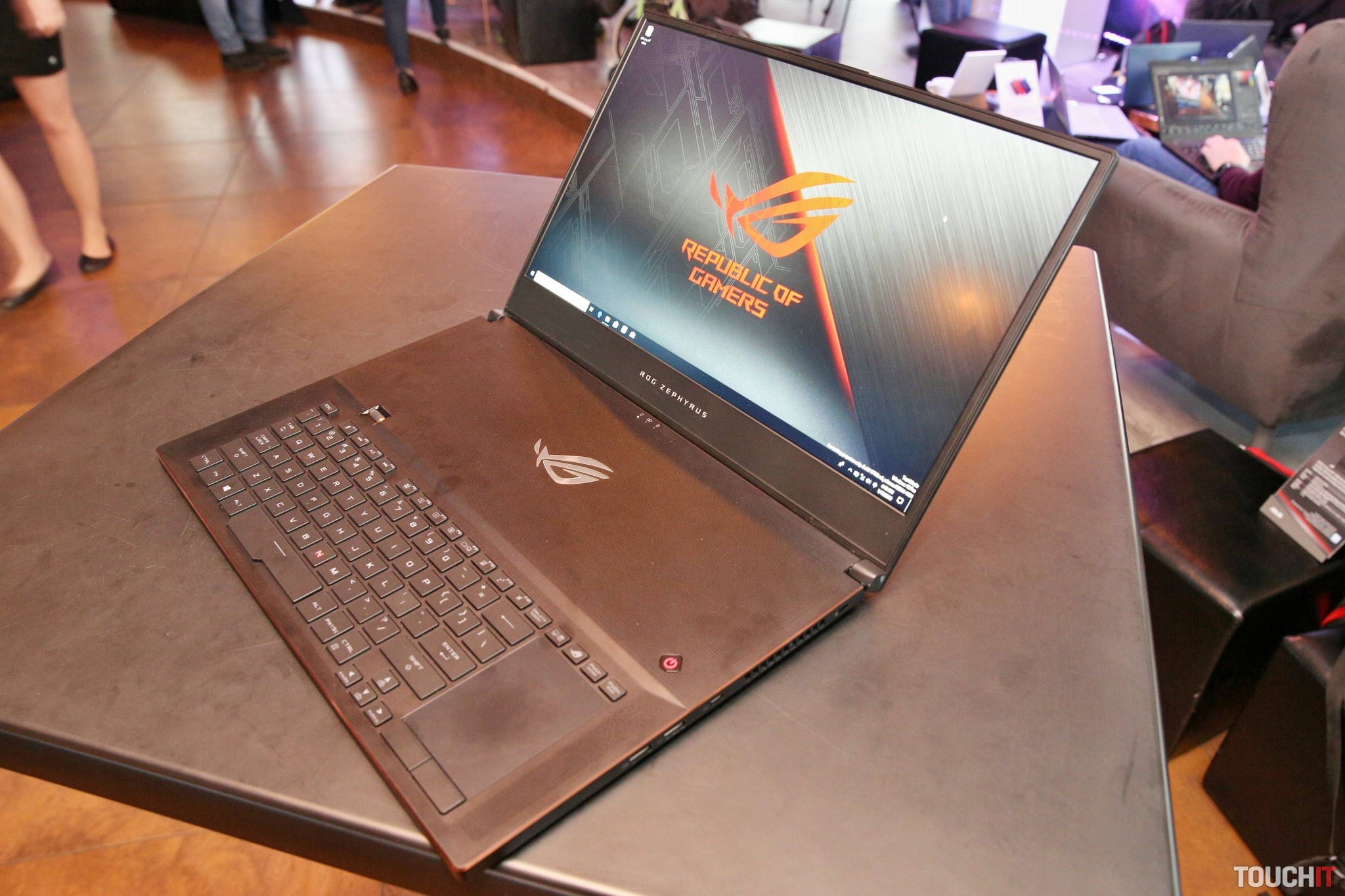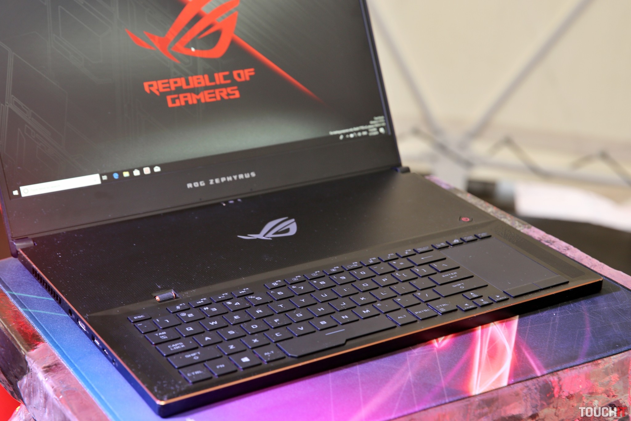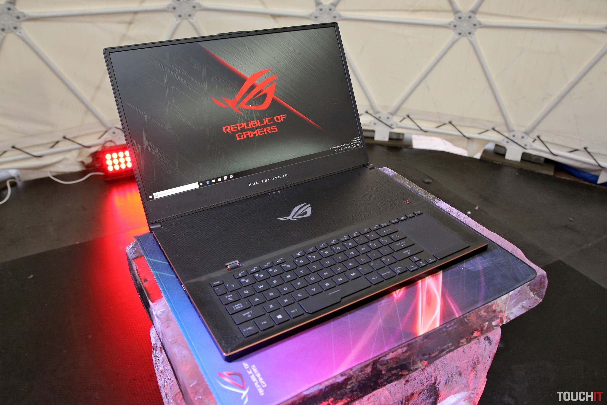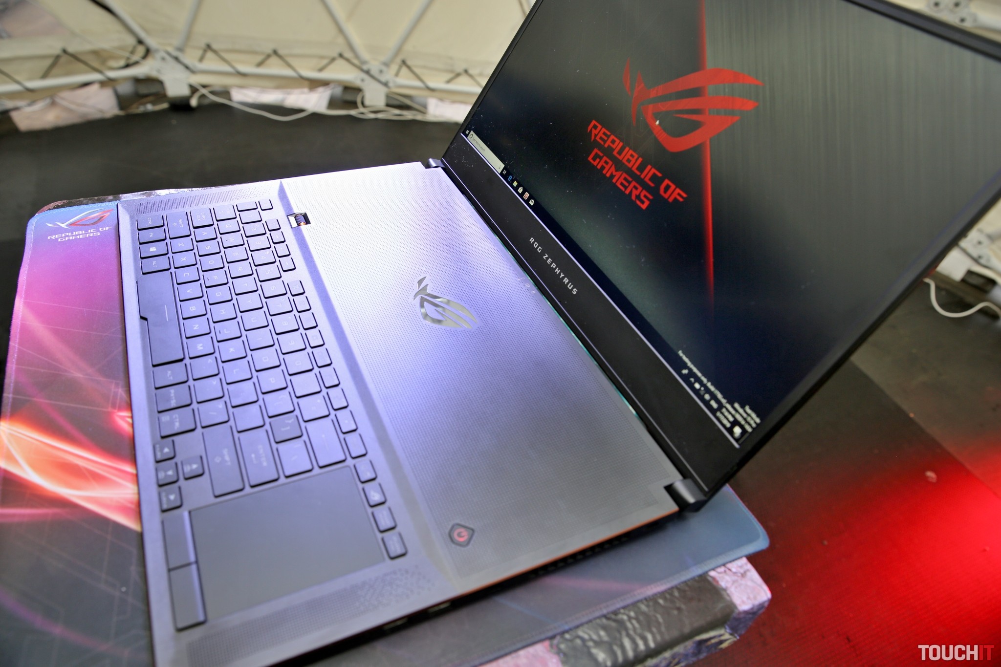 Na výslnie tak prichádza model ROG Zephyrus S (GX701), ktorý obsahuje 17,3-palcový panel a je to mimoriadne tenký (18,7 mm) a ľahko prenosný herný počítač. Notebook GX701 zdedil viacero prvkov zo svojou 15-palcovou verziou vrátane sklápacieho prvku pri jeho otvorení. To efektívne pomáha udržať notebook dostatočne chladným a klávesnica je pritom umiestnená veľmi pohodlne na ovládanie. Na boku klávesnice nájdete aj trackpad. Rozmerovo sa tento notebook pohodlne zmestí do ruksaku.