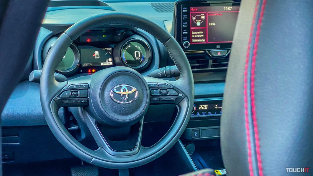 Nová Toyota Yaris je na prvý pohľad malé auto, ale vďaka konštrukčným zmenám ponúka dostatok vnútorného priestoru, má výrazne lepšiu torznú tuhosť karosérie (podľa výrobcu najlepšiu v segmente), je širšia a ťažisko má posunuté nižšie, vďaka čomu sa zlepšili jazdné vlastnosti a celkový „feeling“ z jazdy. Nám okamžite padli do oka výrazné línie karosérie, ktorá bola v pútavej červenej metalíze s čiernymi doplnkami. Dizajnéri si dali záležať na každom detaile, čo ceníme. Párkrát sme si auto obišli a našli sme rôzne zaujímavé detaily, ktoré vo výsledku tvoria hodnotný celok. Tento model bude dostupný v rôznych stupňoch výbav, no už v „základe“ dostanete veľa zaujímavých prvok výbavy a asistenčných systémov.