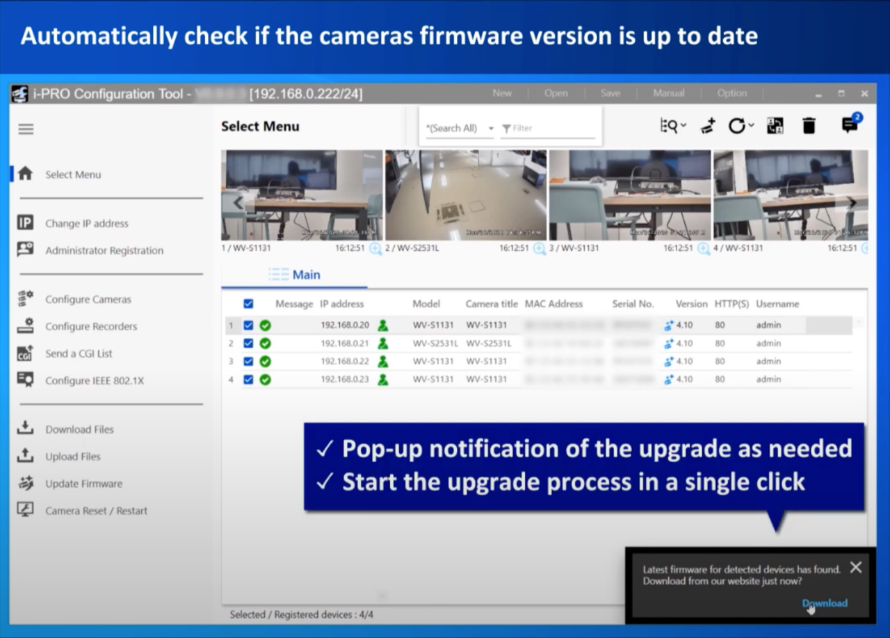 Pri inštalácii systémov tohto typu, ktoré sa inštalujú v zložitých sieťach, je často hlavným problémom konfigurácia. Najmä v prípade riešení založených na umelej inteligencii, ktoré je ťažké nastaviť bez IT podpory. Práve na tento účel slúži softvér i-PRO Configuration Tool.