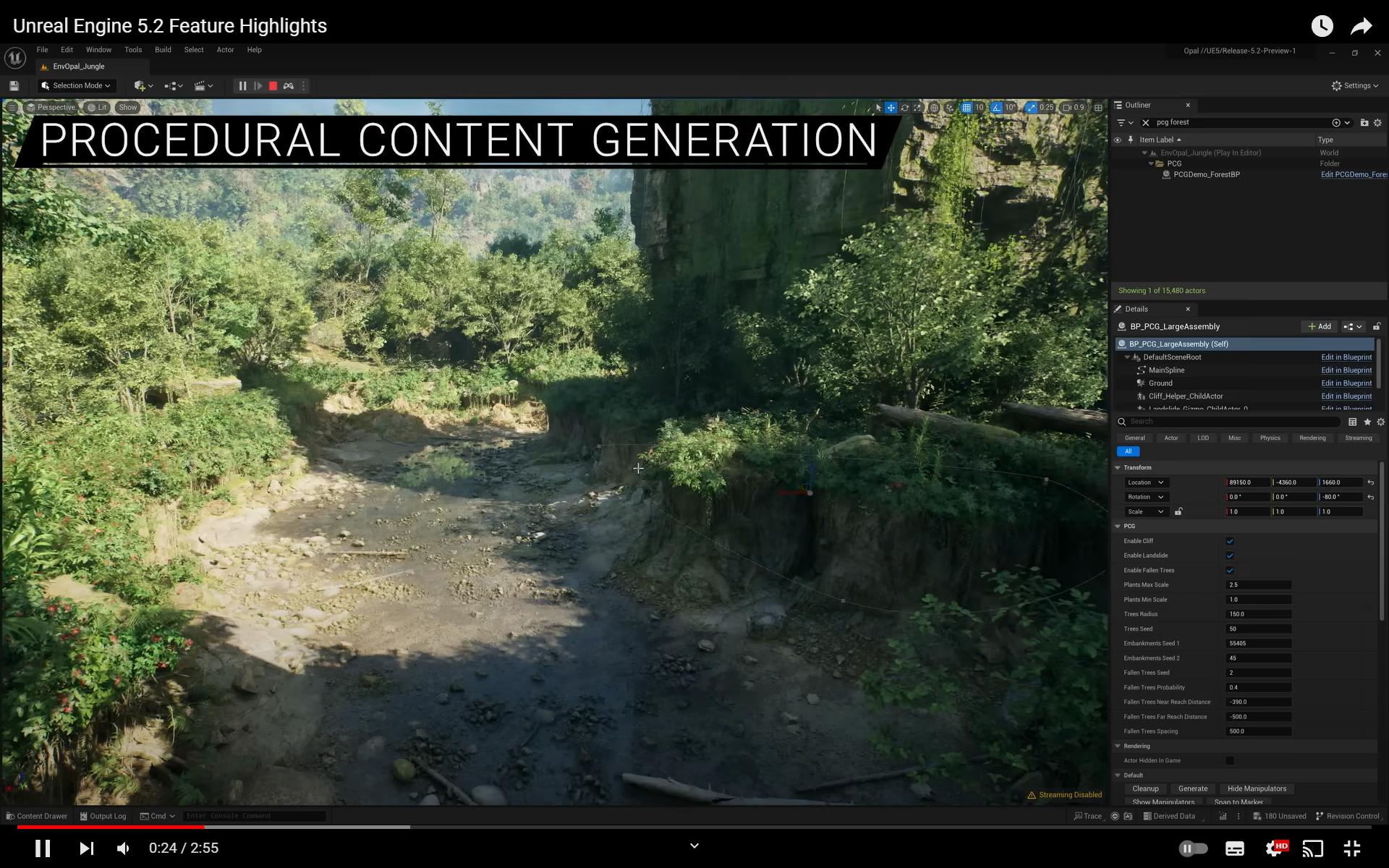 Unreal Engine 5.2 prináša podporu pre DLSS 3.0 a jej jednotlivé oblasti tejto funkčnej výbavy. Podporuje úpravu terénu v takmer v reálnom čase. To ale aj s procedurálnym generovaním obsahu so všetkým, čo prináša. Čo to znamená? Predstavte si filmovú scénu točenú „na greene“. Hlavná postava je na zelenej podlahe a má za sebou zelenú scénu. V rámci scény potrebujete vytvoriť scénu. Generovanie objektov po jednom zaberie množstvo času a zároveň neposkytne žiadaný výsledok. Tu prichádza na rad generovanie za pomoci geometrických uzlov a odhadovanie scény pomocou AI.