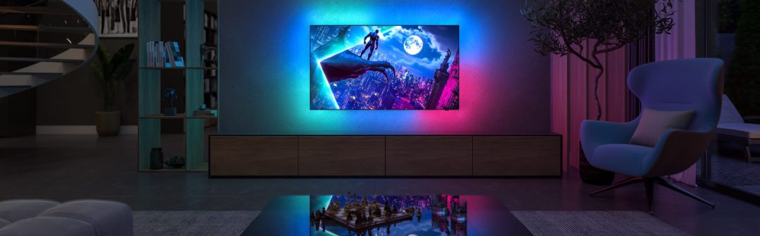 Televízor Philips OLED+950 stanovuje celkom nový štandard vďaka kombinácii vynikajúcej kvality obrazu a doslova pohlcujúceho zážitku zo sledovania, ktorý poskytuje štvorstranný systém Ambilight.