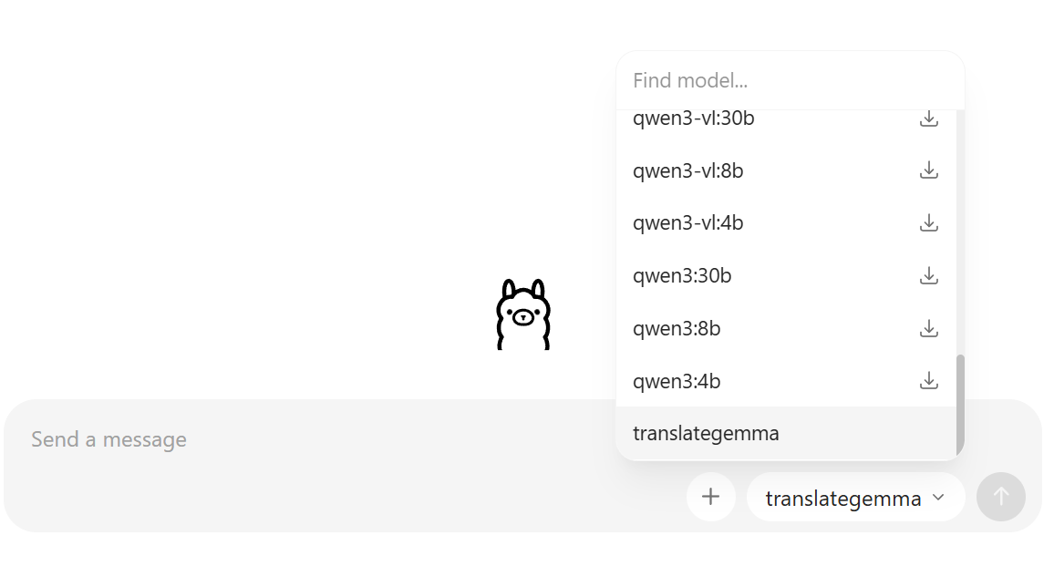 Zadajte príkaz ollama run translategemma.