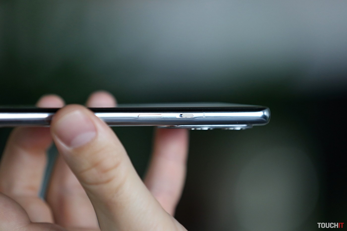 Po dizajnovej stránke som sa neubránil dojmu, že dizajnéri OnePlus sa výrazne inšpirovali Samsungom. To však nie je vôbec na škodu. Pri pohľade z bočnej strany je vidieť príkladne tenký hliníkový rámik, ktorý je členený a miestami predelený anténami.Rozloženie tlačidiel je už tradičné OnePlus. Na pravej strane sa nachádza tlačidlo napájania, nad ktorým je umiestnený mechanický volič zvukových režimov. Tieto tlačidlá sú vhodne umiestnené, len škoda, že volič režimov sa nachádza napravo a tlačidlá na ovládanie hlasitosti sú naľavo. Hneď by som ich vymenil.Zariadenie sa veľmi príjemne drží a pôsobí prémiovým až industriálnym dojmom. Pri rozmeroch 163,2 × 73,6 × 8,7 mm a hmotnosti 197 gramov ide o smartfón, ktorý rozmerovo a hmotnostne považujem za zlatú strednú cestu. Pre pohodlné držanie je smerodajná šírka, ktorá v tomto prípade nepresahuje 75 mm. Nie je to pritom tak dávno, čo aj 5,5-palcové smartfóny túto šírku hravo presahovali.Displej