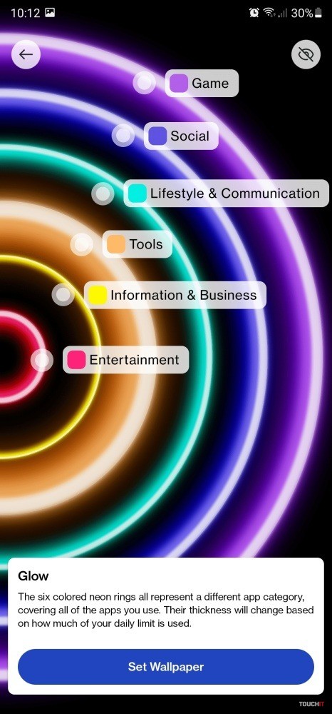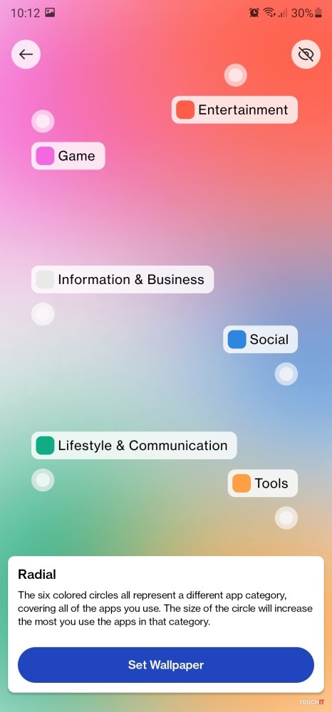 WellPaper je digitálny nástroj, ktorý zobrazuje dynamicky sa meniacu tapetu. Tá sa mení na základe údajov o používaní smartfónu, čo umožňuje cez vizuálne vyjadrenie lepšie porozumieť, akým spôsobom používame naše zariadenia. Na výber je z troch rôznych tapiet. V ponuke sa nachádza dizajn, ktorý zobrazuje jemné a plynulé farebné prechody, alebo podrobnejší dlaždicový dizajn, ktorý sa neustále mení na základe používaných aplikácií. WellPaper má pritom minimálny vplyv na výdrž batérie. Wellpaper zastrešuje rôzne typy aplikácií a triedi ich do 6 kategórií, čím si môžete ľahko uvedomiť, akej oblasti sa používateľ venuje najviac a na čo telefón používa. Prehľad o používaní aplikácií z jednotlivých kategórii je možné jednoducho overiť aj kliknutím na tapetu priamo na domovskej obrazovke. Zobrazí sa podrobný rozpis času, ktorý odhalí používanie aplikácií v týchto 6 kategóriách:- Sociálna oblasť